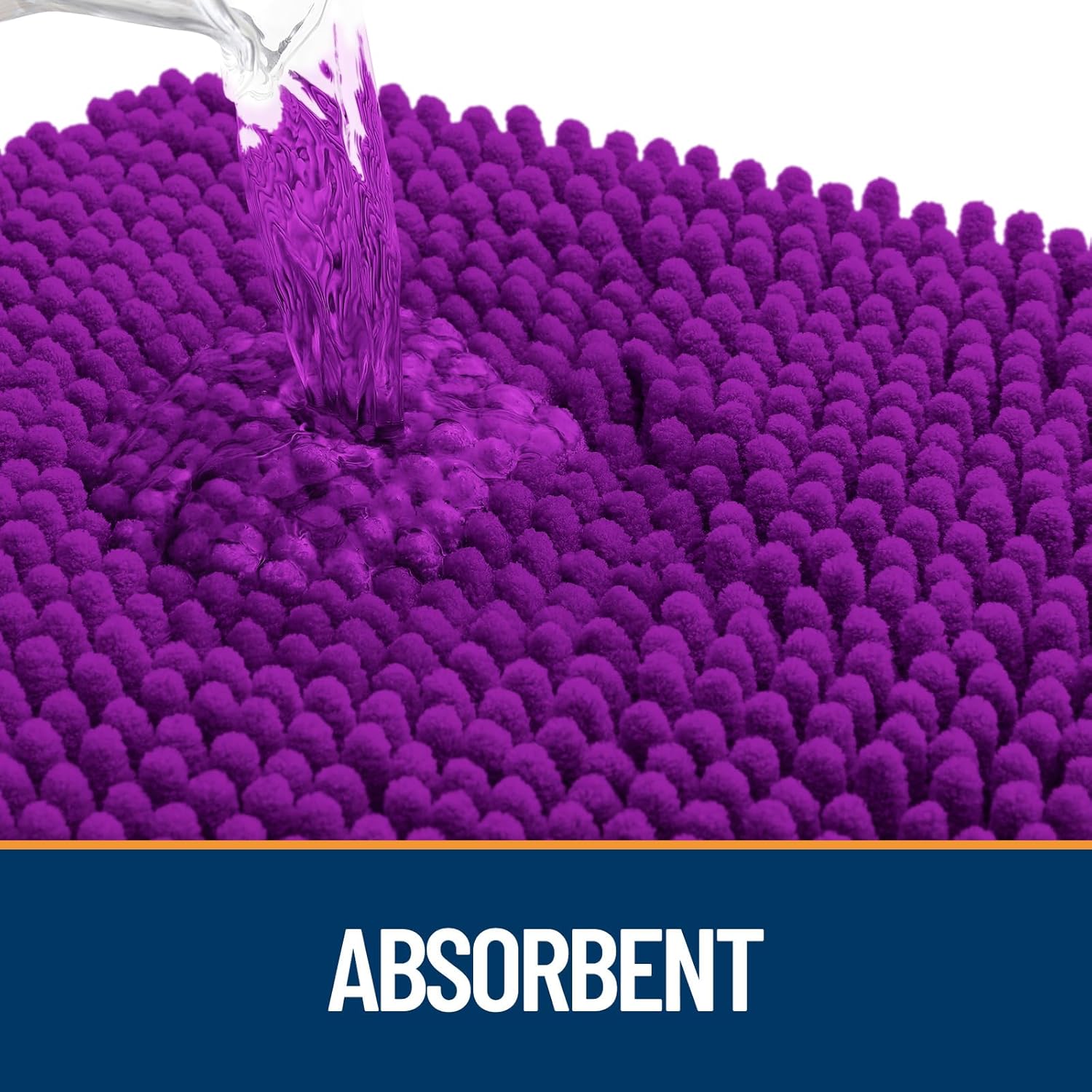 OLANLY Dog Door Mat for Muddy Paws 47x17, Absorbs Moisture and Dirt, Absorbent Non-Slip Washable Doormat, Quick Dry Chenille Mud Mat for Dogs, Entry Indoor Entryway Carpet for Inside Floor, Purple