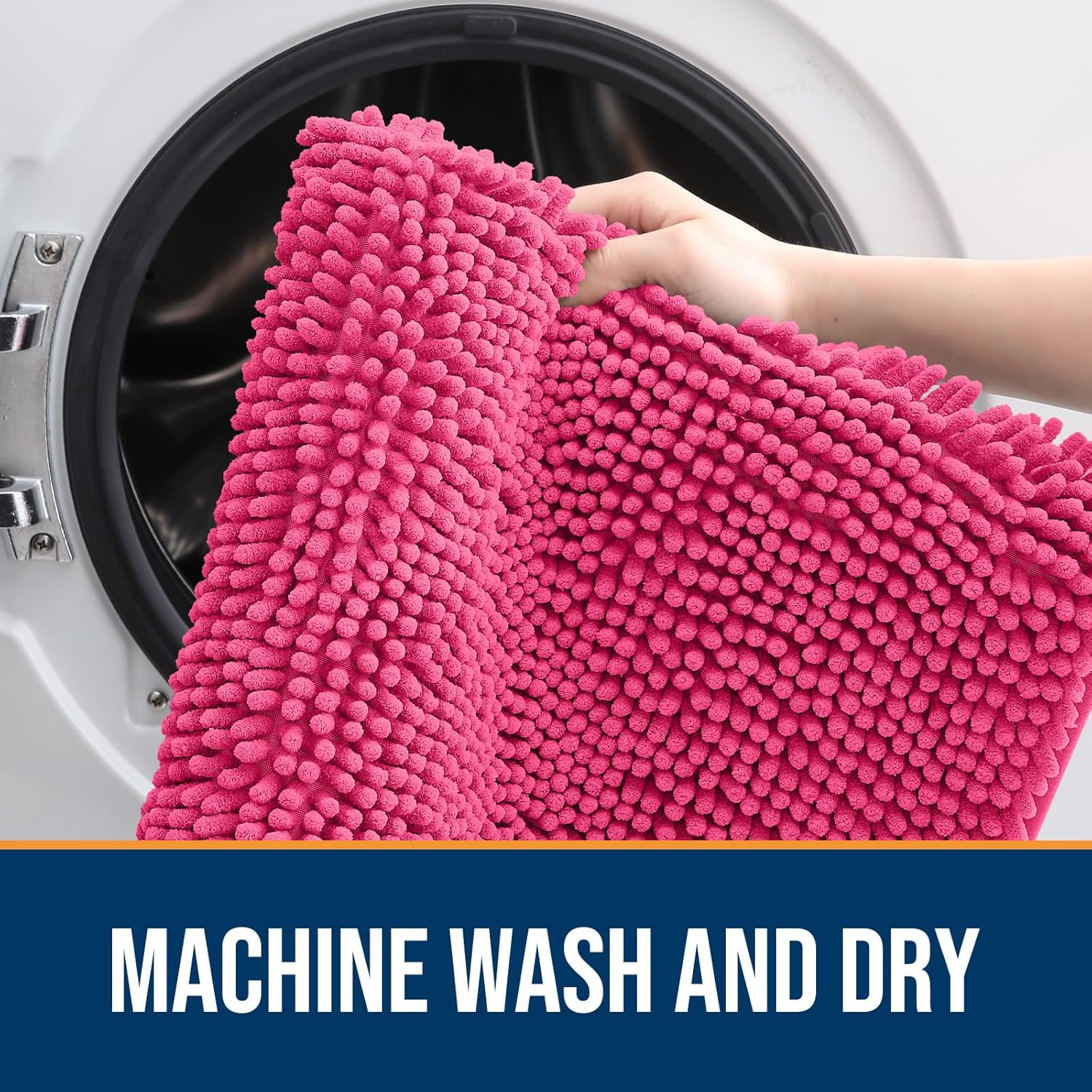 OLANLY Dog Door Mat for Muddy Paws 70x35, Absorbs Moisture and Dirt, Absorbent Non-Slip Washable Doormat, Quick Dry Chenille Mud Mat for Dogs, Entry Indoor Entryway Carpet for Inside Floor, Hot Pink