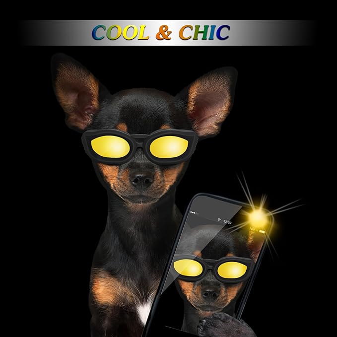 - Premium Material: With anti-scratch PC lenses, our sunglasses for dogs small breed feature excellent UV protection, not easy to break or damage, protecting your pet's eyes from strong sunshine/ wind/ snow/ water/ dust.