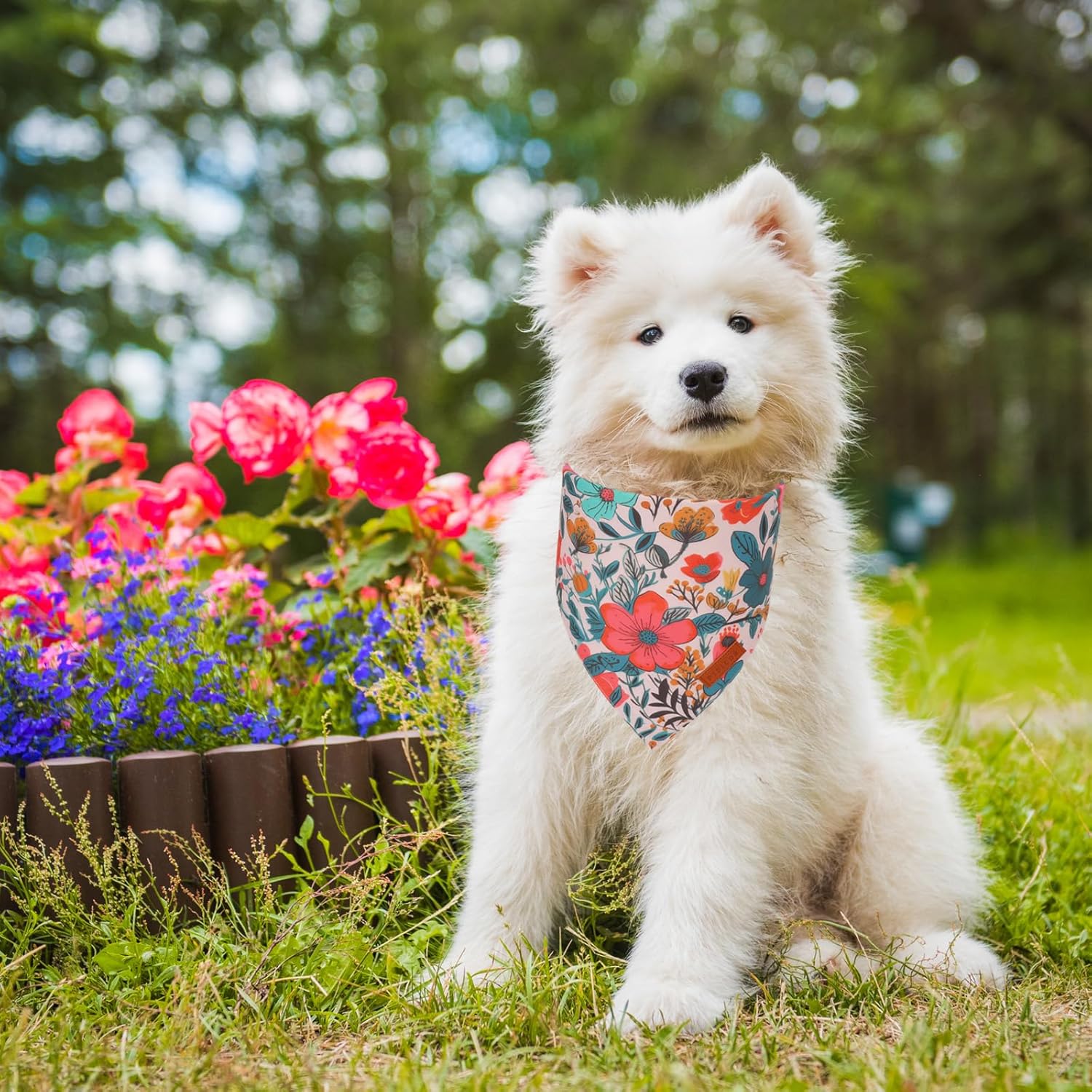 - 2 Pack Dog Bandanas: One package has two different style dog flower bandanas. Both bandanas were full of spring atmosphere, super cute and loved both by your boy and girl! Whether the character of your dog is lively or quiet, these bandanas will fit them all!