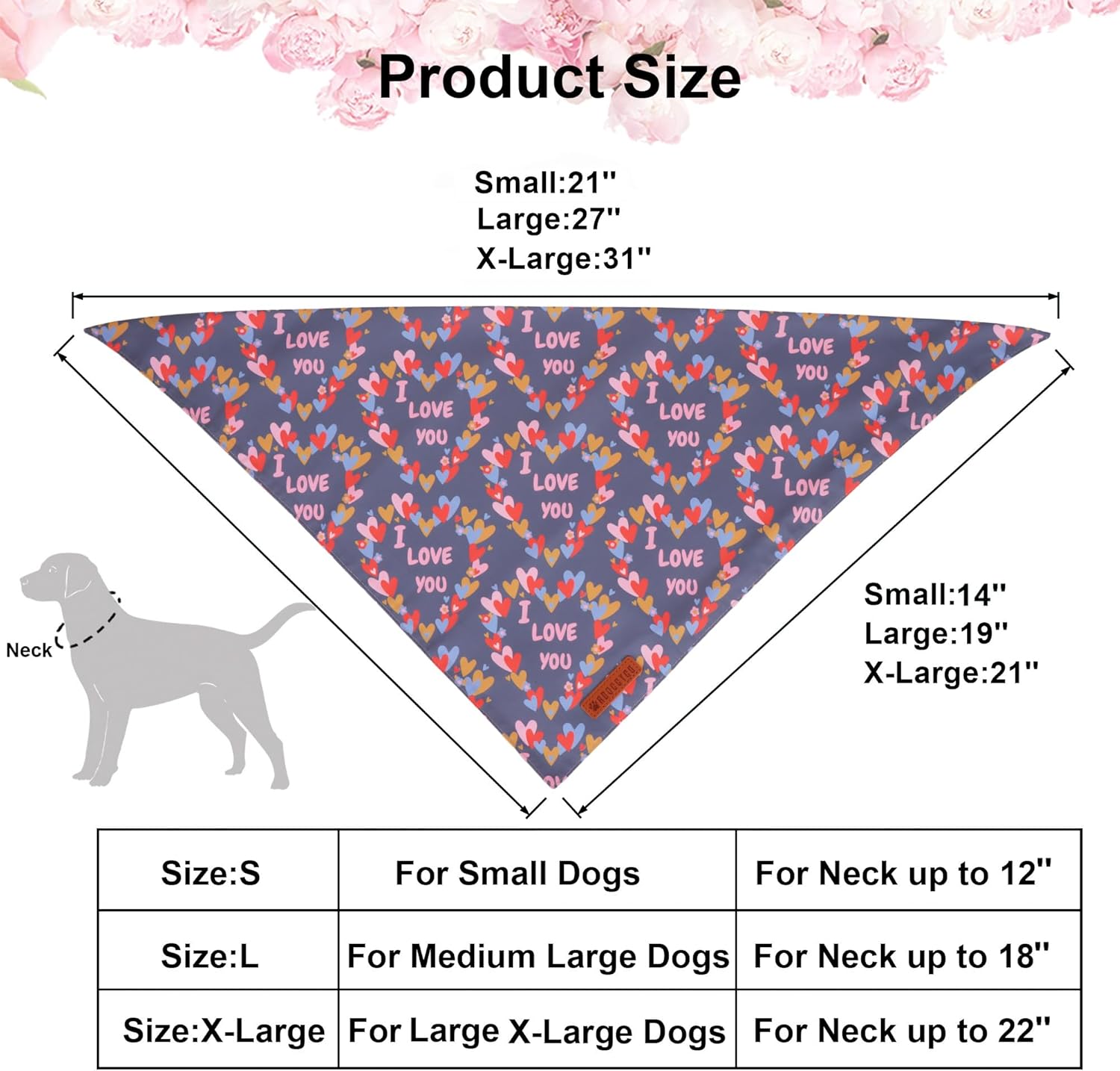 - Valentine's Day Dog Bandanas: Well designed pink blue valentine bandanas with heart and floral pattern, "always in my heart" and "I love you" letters, full of romantic atmosphere, make your pet look more stylish and attractive.