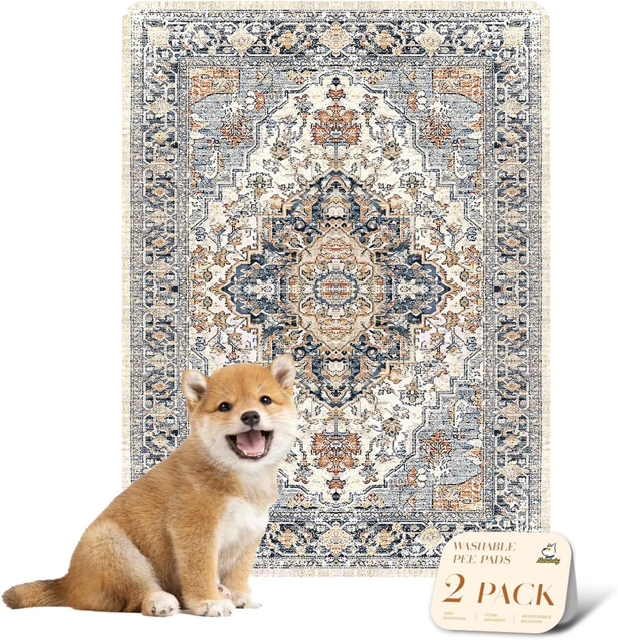 nunubaby Reusable Potty Pads for Dogs for Crates and Floors. Washable Pee Pads for Dogs, Stylish, Non-Slip and Leak-Proof Pee Pads. (Beige/Multi, 18" x24")