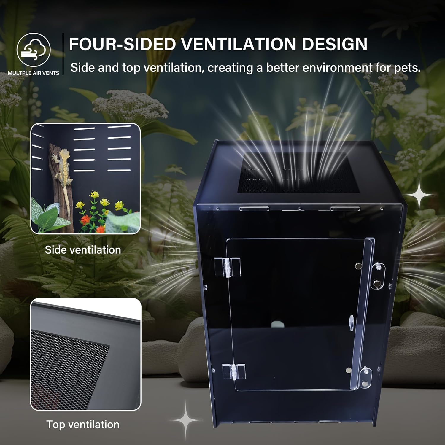 - High Transparency Acrylic Material, Easy to Clean and Maintain Made of high-quality acrylic, this small terrarium offers excellent visibility and is easy to clean. It ensures that your spider terrarium or reptile terrarium stays hygienic with minimal effort, providing a healthy habitat for your pets and saving you time on maintenance.