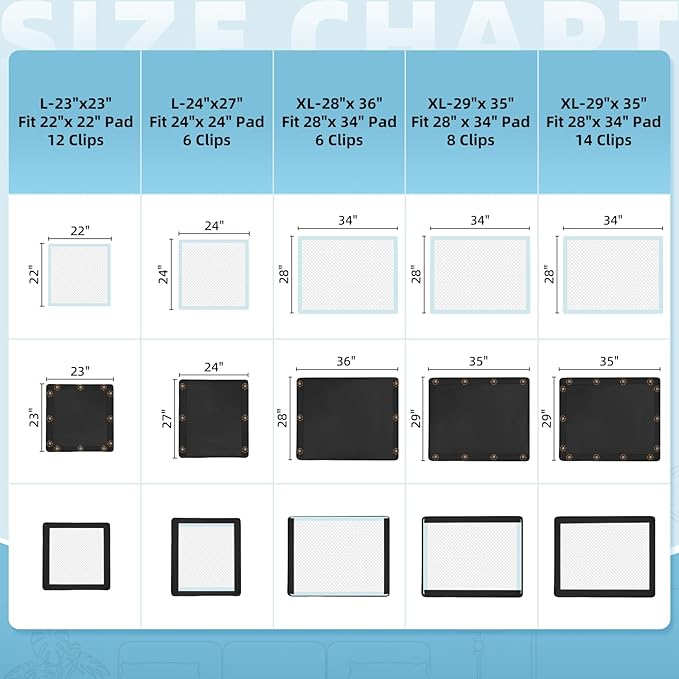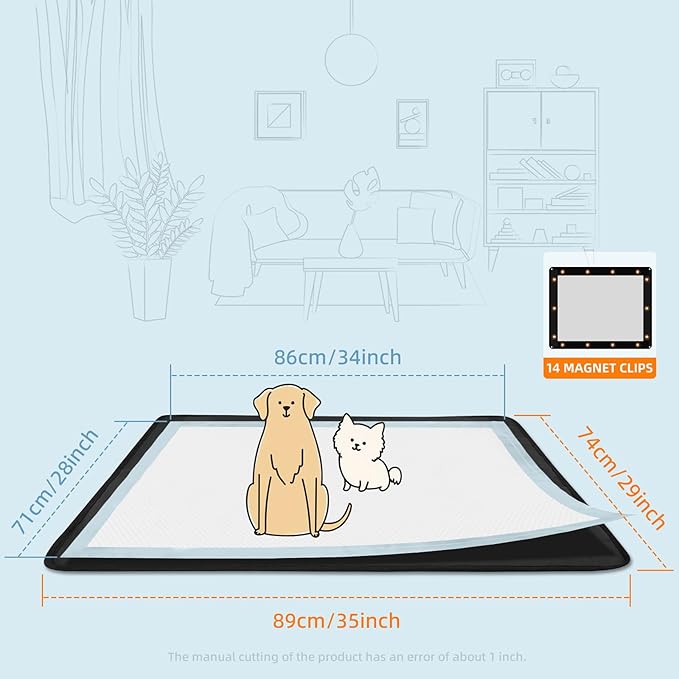Dog Pee Pad Holder, Puppy Pad Holder, 14 Powerful Magnetic Clips, Indoor Dog Potty, Oxford Cloth Material, Fit 34x28 Pad, Black