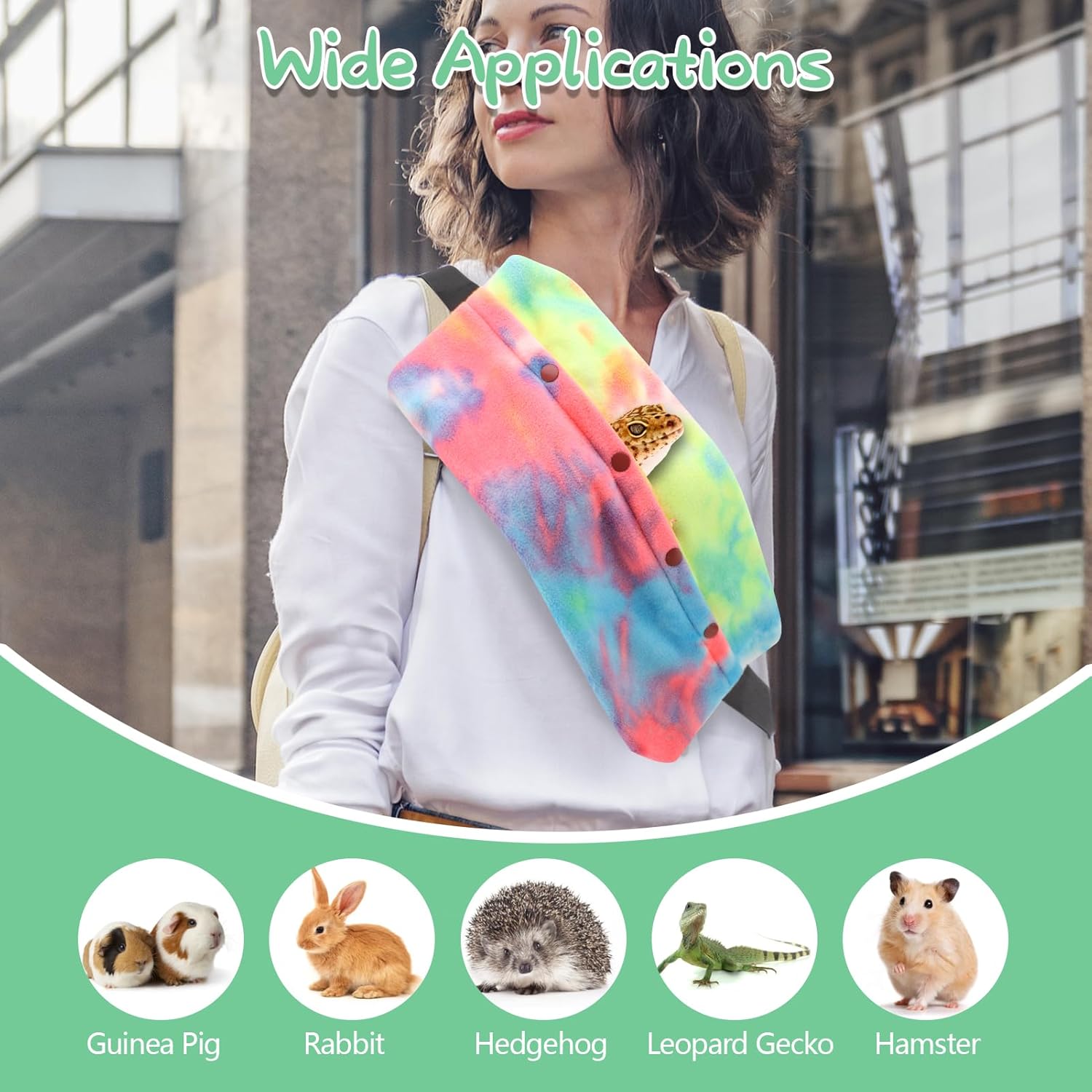 Bearded Dragon Leash and Harness Set, Adjustable Bearded Dragon Carrier Sling Leash and Carrier, Lizard Reptile Small Pet Training Leashes and Beardie Snuggle Sling Bag for Outdoor Travel (Rainbow)