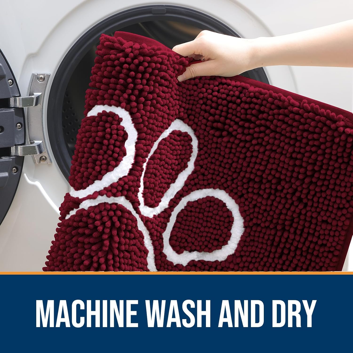 OLANLY Door Mat for Muddy Dog Paws 48x30, Ultra Absorbent Chenille Mud Doormat with Paw Print Design, Non-Slip Washable Doormat for Indoor Entryway, Quick-Dry Pet Bed Mats for Dirty Dogs, Burgundy