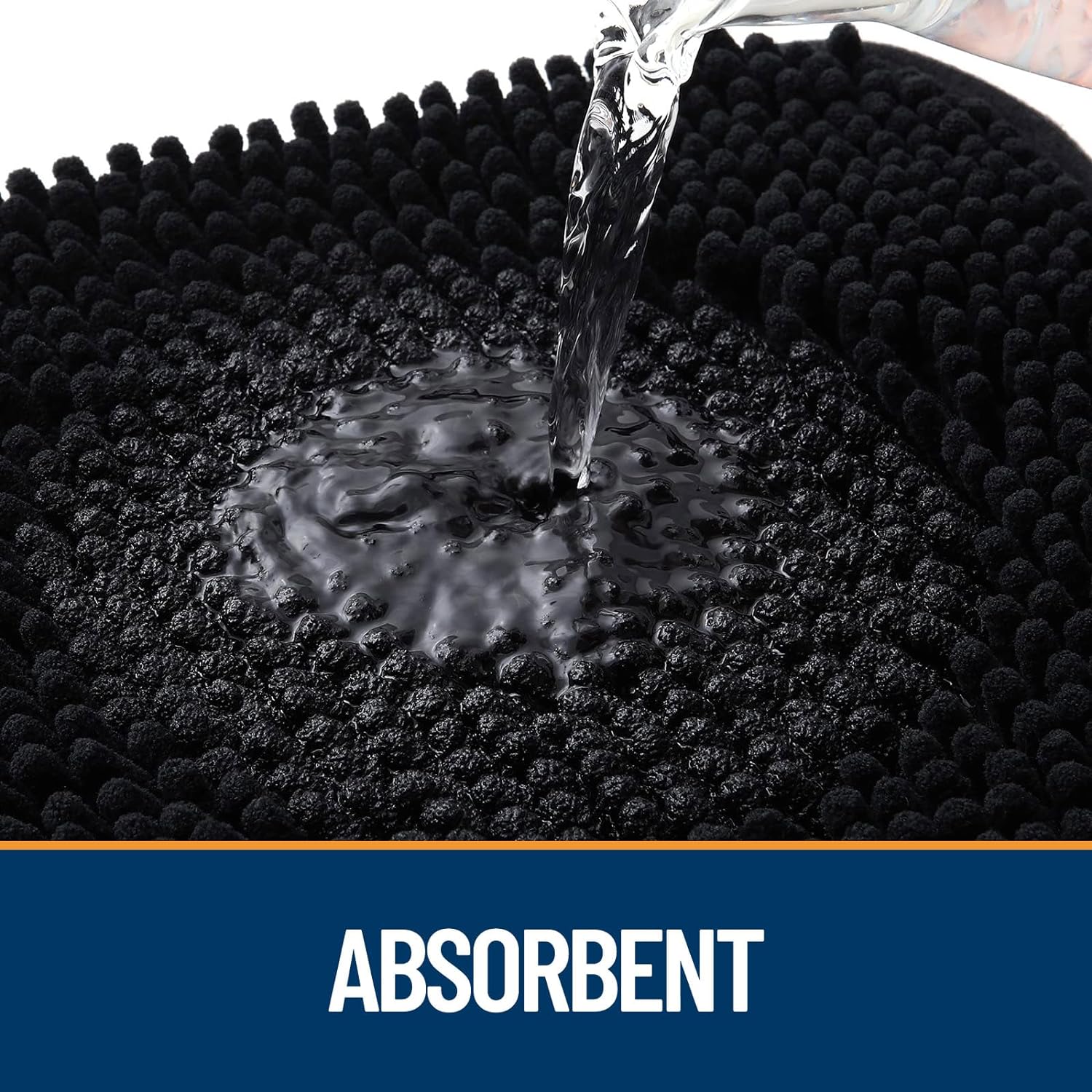 OLANLY Door Mat for Muddy Dog Paws 36x24, Ultra Absorbent Chenille Mud Doormat with Paw Print Design, Non-Slip Washable Doormat for Indoor Entryway, Quick-Dry Pet Bed Mats for Dirty Dogs, Black