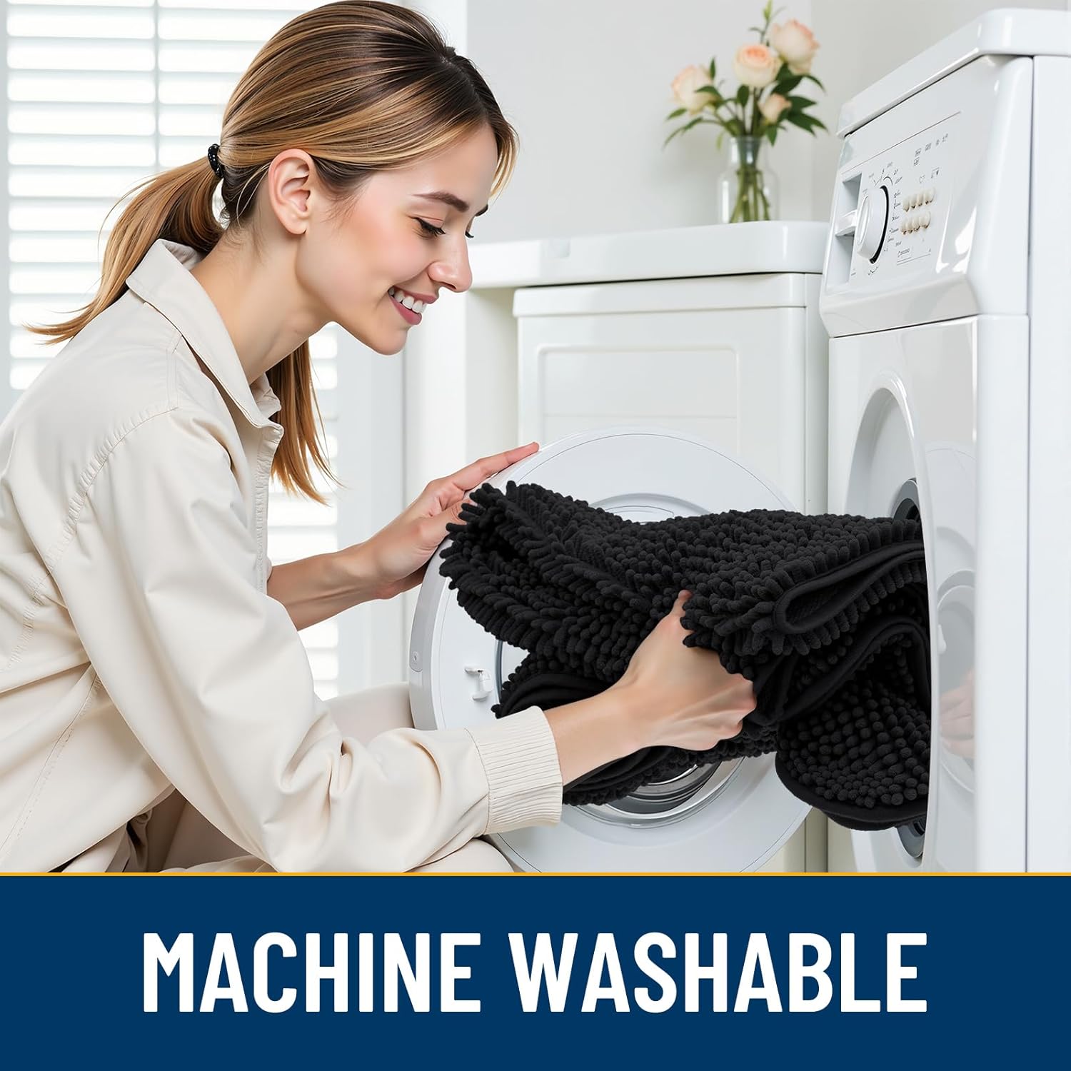Smiry Dog Door Mat for Muddy Paws 47x24, Absorbs Moisture and Dirt Doormat, Non-Slip Washable Quick Dry Chenille Front Door Mat Indoor Entrance, Entryway Carpet for Inside Floor, Black
