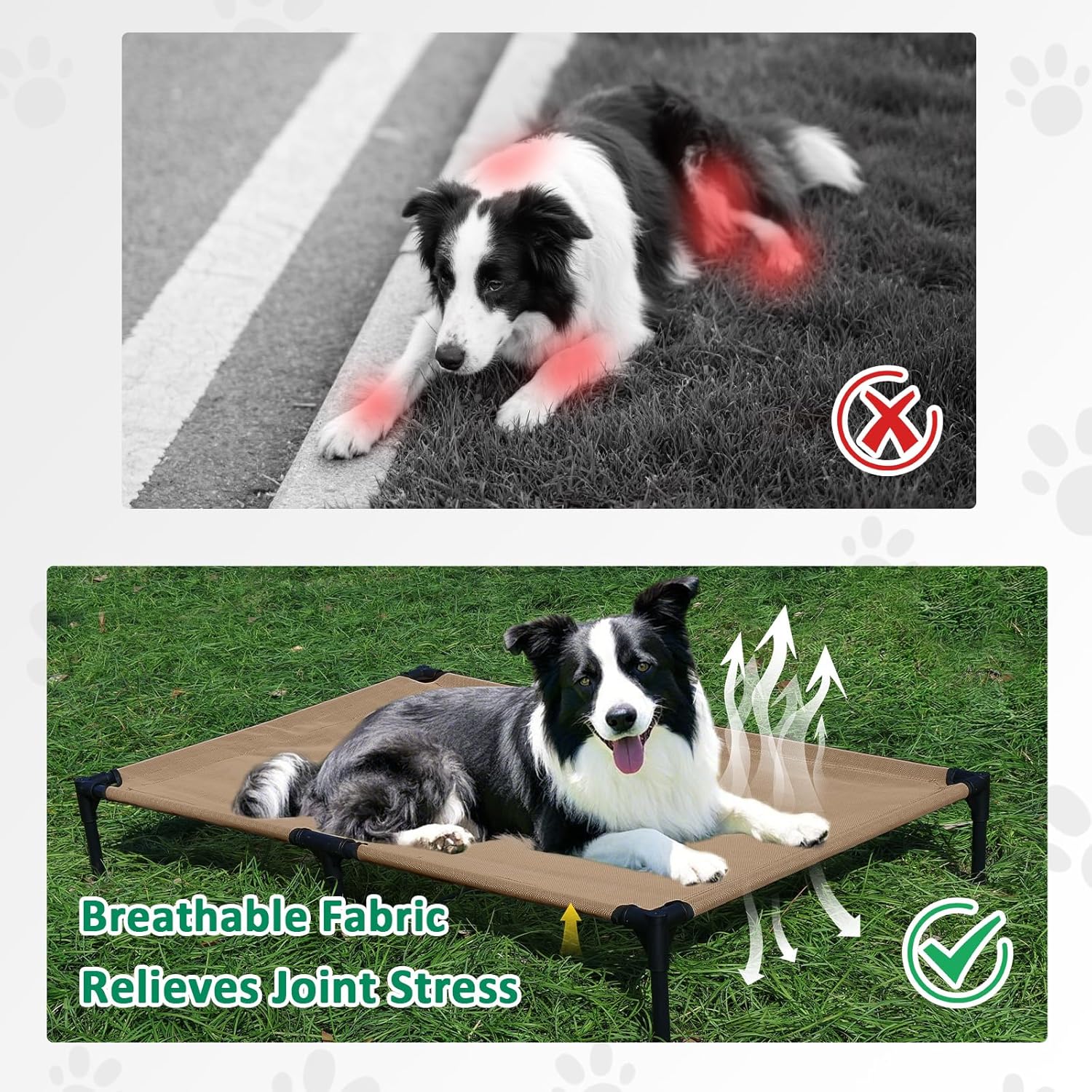 - BREATHABLE TESLIN MESH: This outdoor dog bed comes with breathable and durable Teslin mesh, provides airflow and firm support to relieve joint pressure. Our dog cot bed is suitable for dogs of all life stages, from puppy to the senior