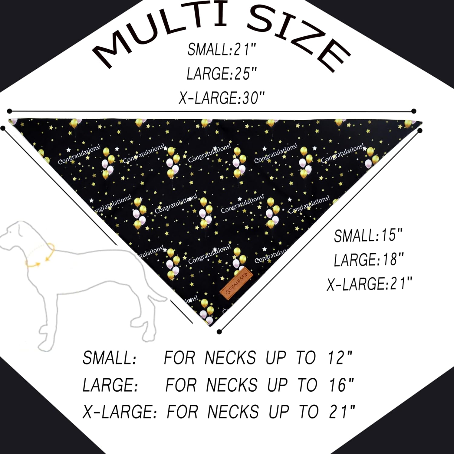 Realeaf Graduation Dog Bandanas 2 Pack, Reversible Pet Scarf for Boy and Girl, Premium Durable Fabric, Holiday Bandana for Small Medium Large and X-Large Dogs (Graduation, Large)