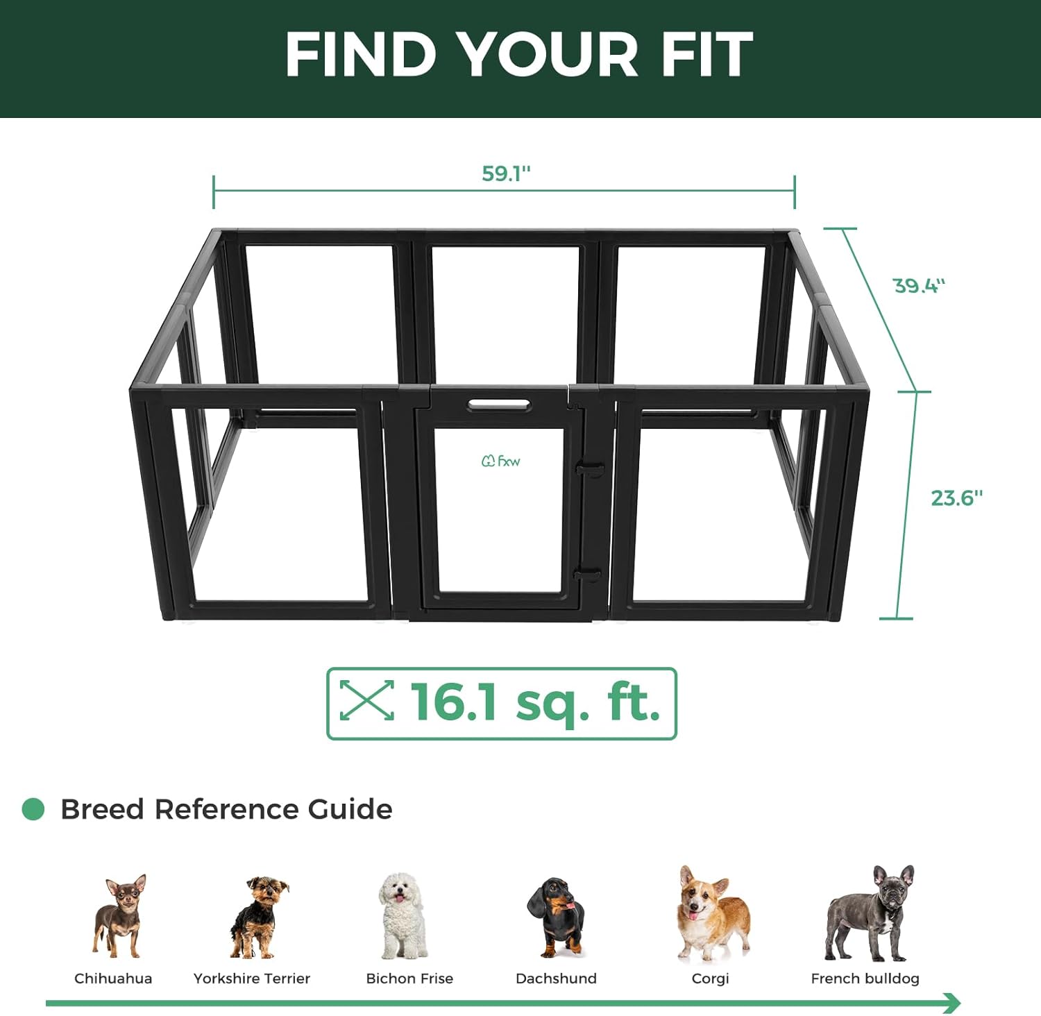 FXW AuraSpace Acrylic Indoor Unleashed Dog Playpen for Puppies and Small Dogs, 24 Inch, 10 Panels, Black