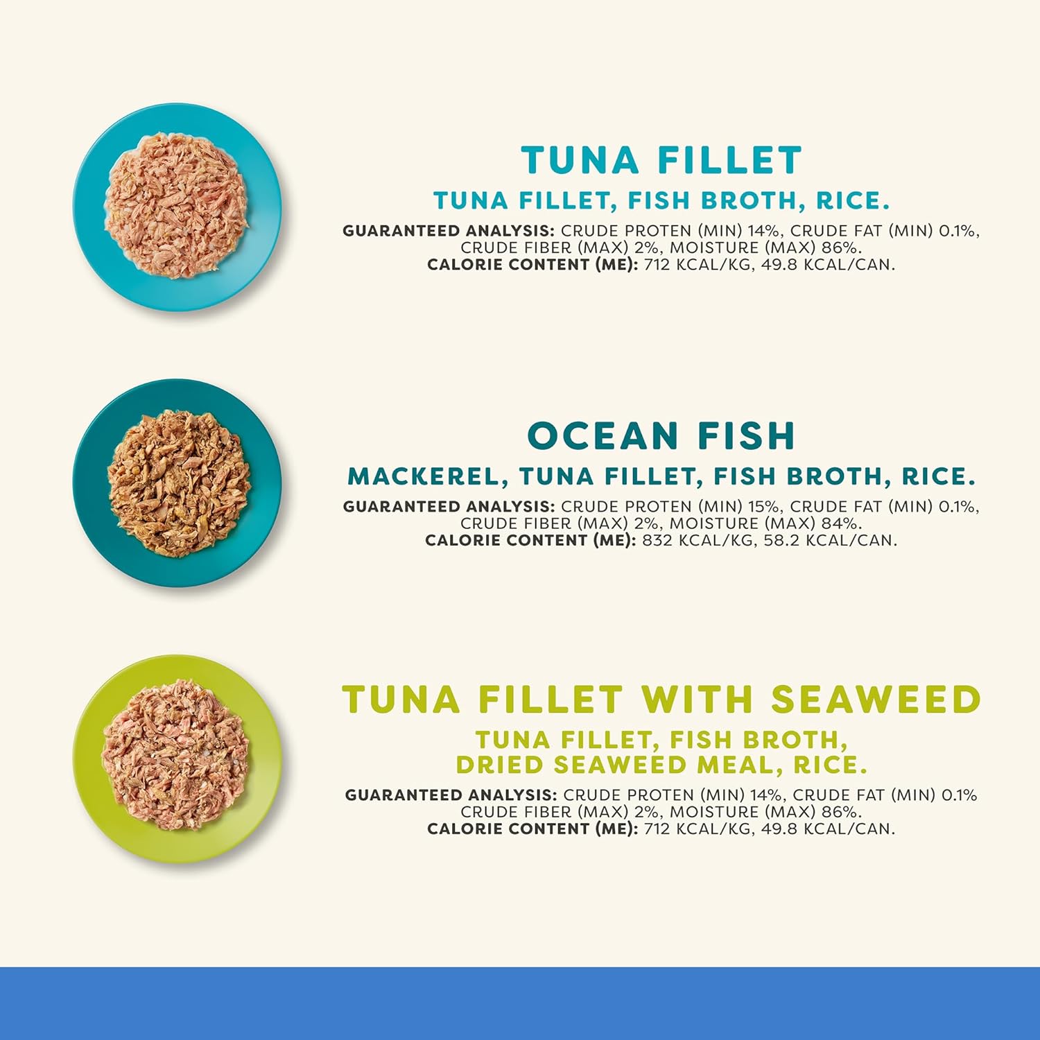 Applaws Natural Wet Cat Food in Broth, Limited Ingredient Canned Wet Cat Food, No Additives, Made with Natural Ingredients, Fish Selection in Broth (36 x 2.47oz Cans)