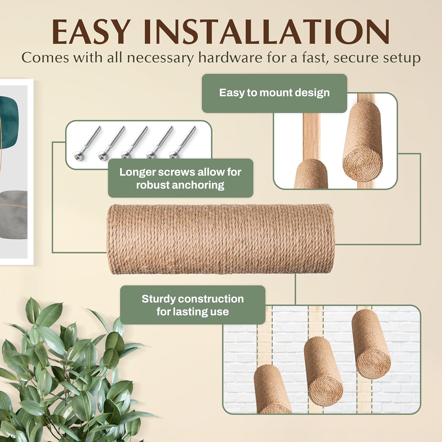- HIGH GRIP CLIMBING STEPS - Includes 2 high-grip cat wall shelves with vertical climbing poles (11” L × 3.5” D) wrapped in thick woven sisal rope. These cat climbing shelves offer satisfying scratching and climbing opportunities, keeping your cat active and engaged while protecting furniture.