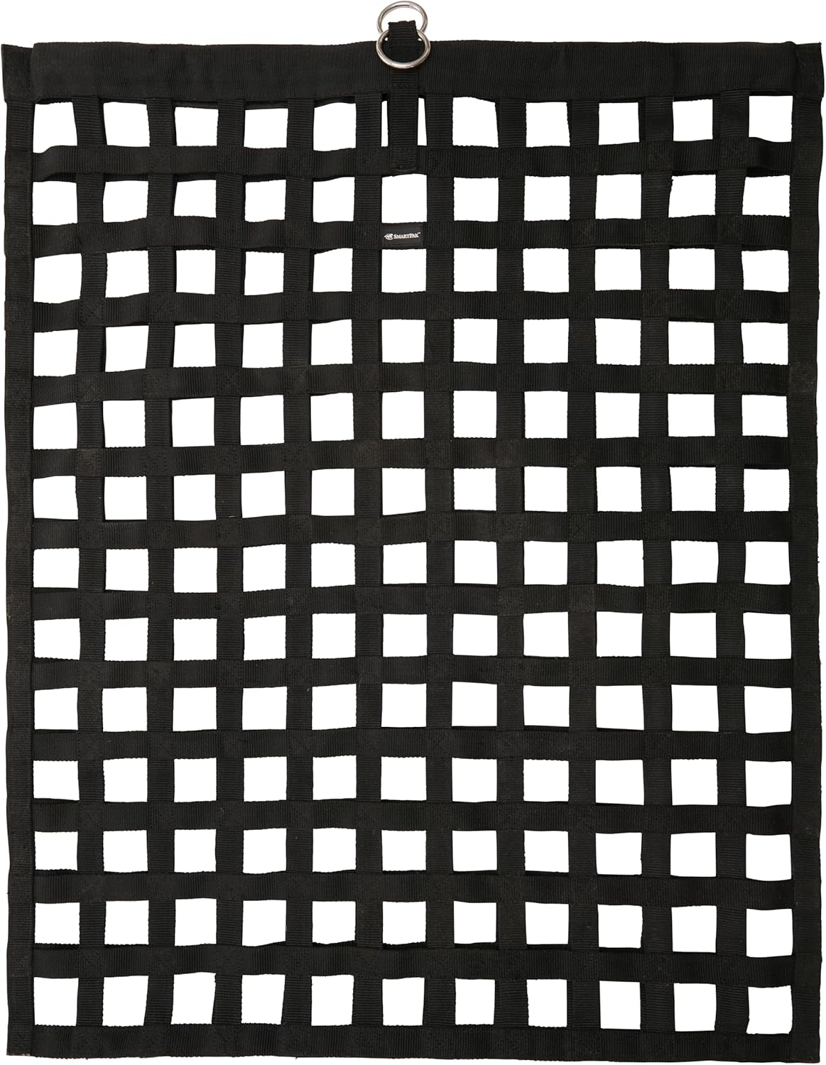 SmartEquine Slow Feed Hay Bag for Horses | Hay Feeder Net with Resistant Nylon | Gator Mouth Enclosure for Easy Loading | Fits 10-15 lbs of Hay | 4 Flakes Bag | 37" x 30" | Black | 1.5" Holes