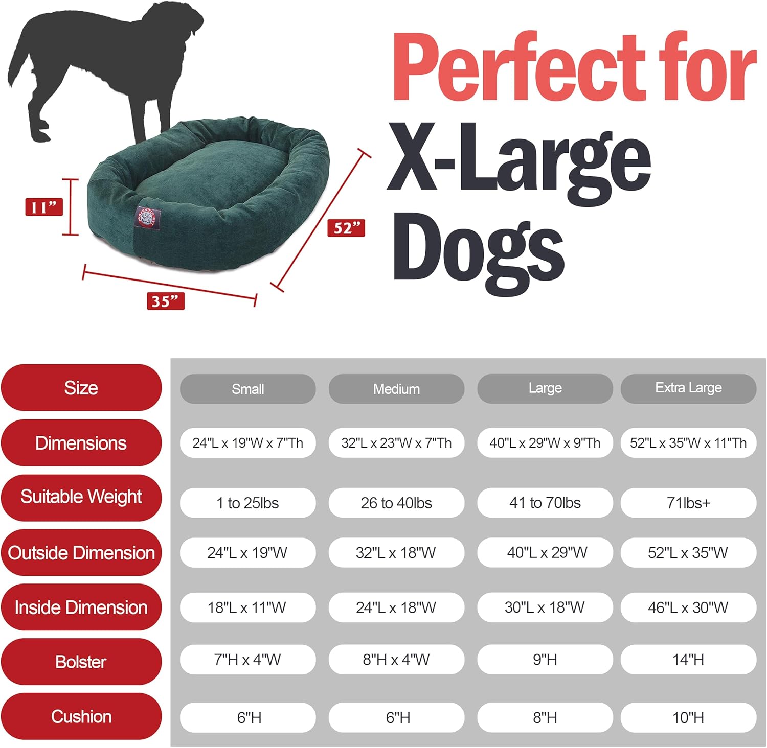 - Product Dimensions : 52"L x 35"W x 11"Th