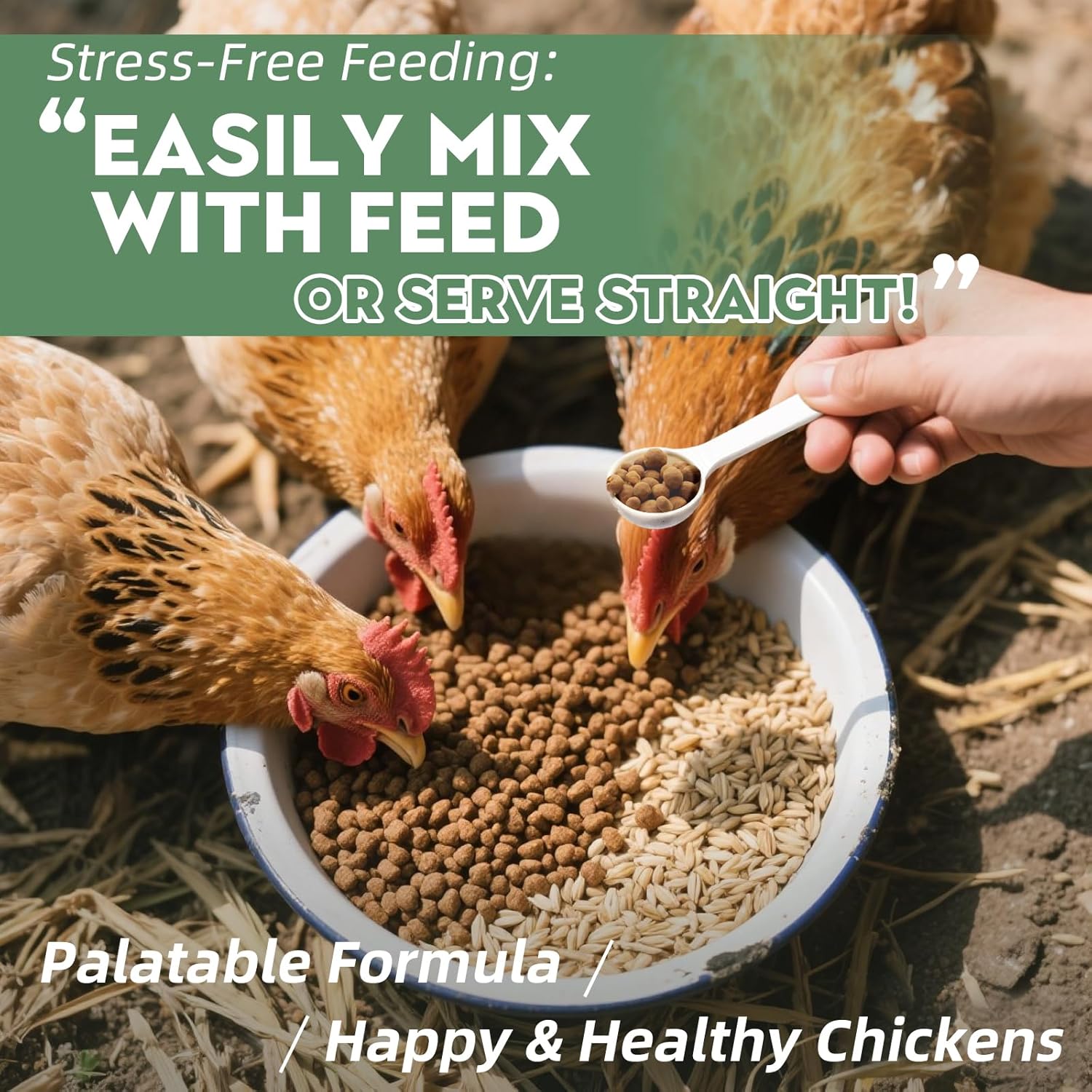 - Ease of Use: Mix with feed, 1 small tablespoon for 4 chickens. Adults: 1 gram/day. Chicks: 0.5 grams/day. Continue for 10 days, feeding once daily for best results