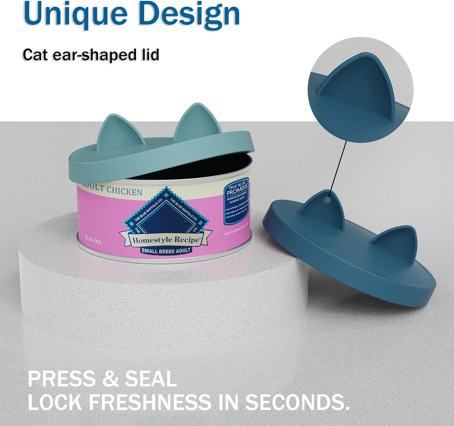 OHMO 2 Pack Pet Food Can Lids, (3.3 in / 85mm) Silicone Pet Food Can Lids Covers for 5.5 oz Cat and Dog Food Cans, Dark&Light Blue