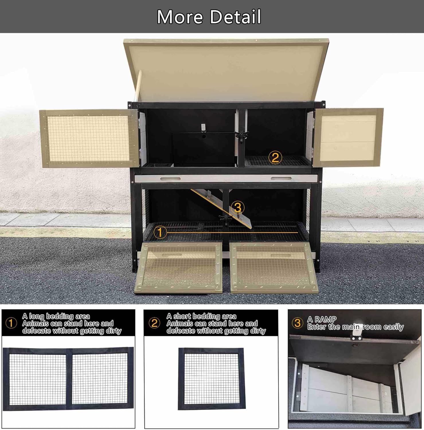 - Ventilated & Secure: Slatted walls with black galvanized mesh ensure optimal airflow while preventing escapes, creating a safe and comfortable environment for your pets.