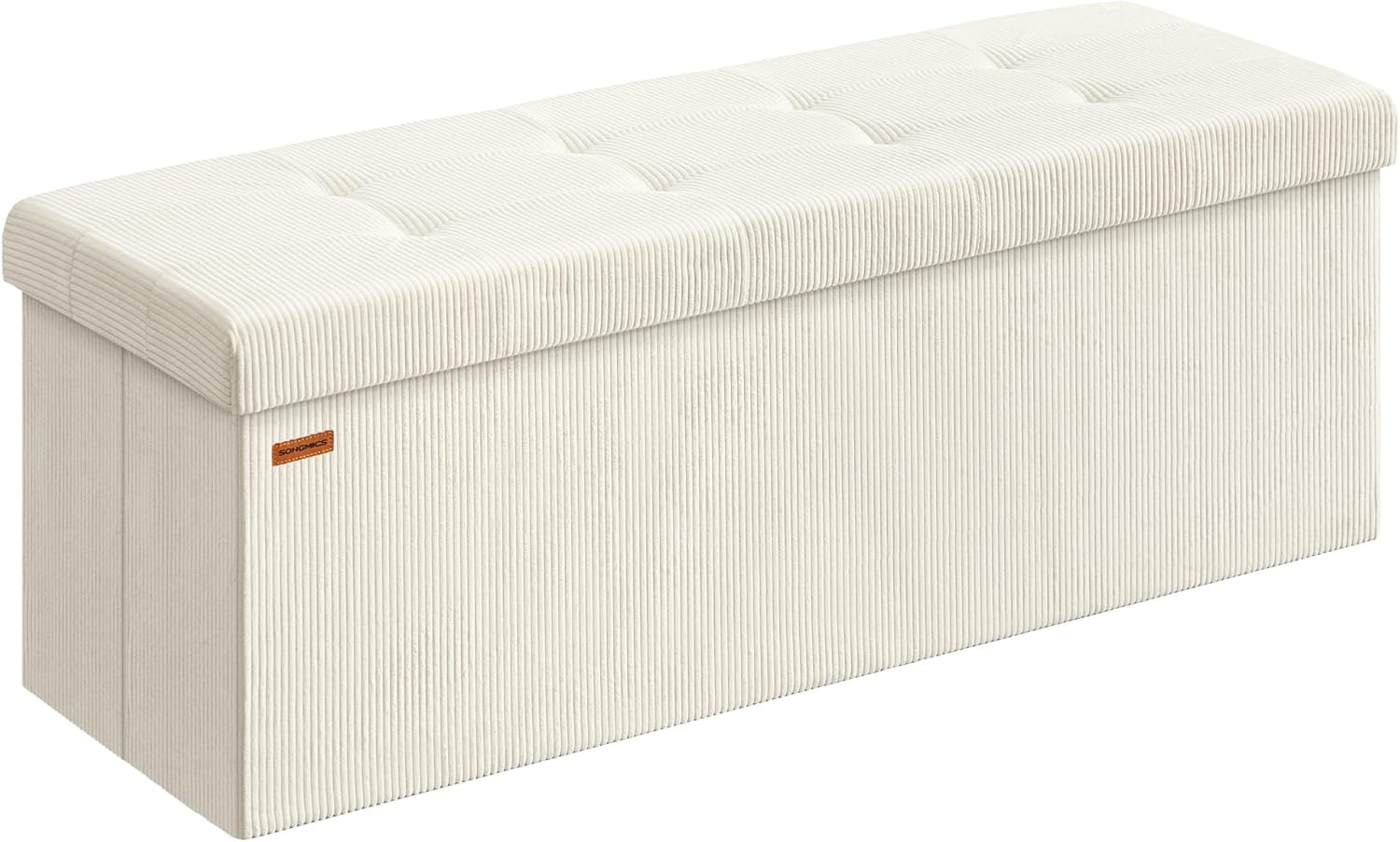 SONGMICS MAZIE Collection - Storage Ottoman Bench, Foldable Foot Rest, 15 x 43 x 15 Inches, End of Bed Bench, Storage Chest, Load 660 lb, Living Room, Bedroom, Entryway, Cream White ULSF604W01