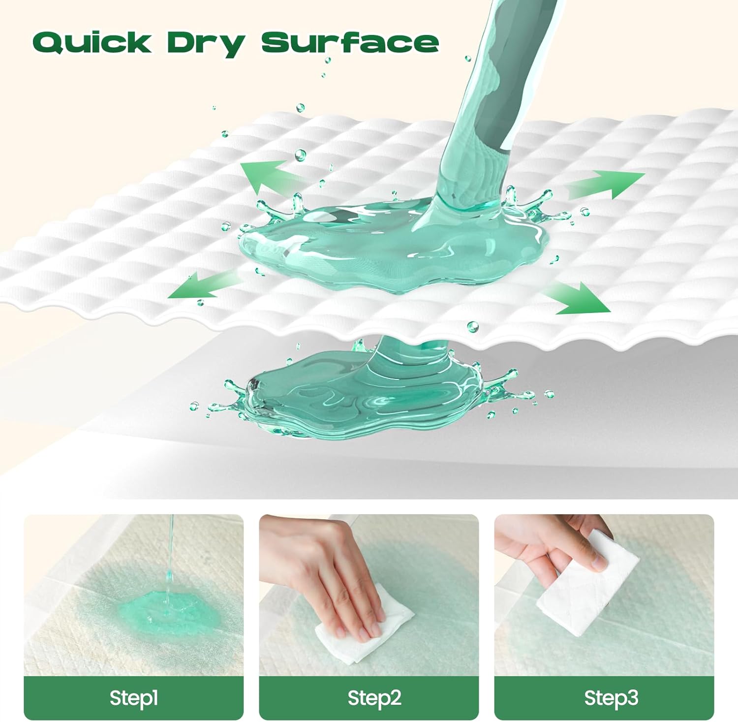 - 🦴【Super Absorbent & Quick Drying】6 layers of protection are designed with polymers for super absorbency, converting liquid to gel in seconds and staying dry. The non-woven fabric of the pee pads accelerates liquid absorption and prevents reverse osmosis, keeping the surface dry quickly