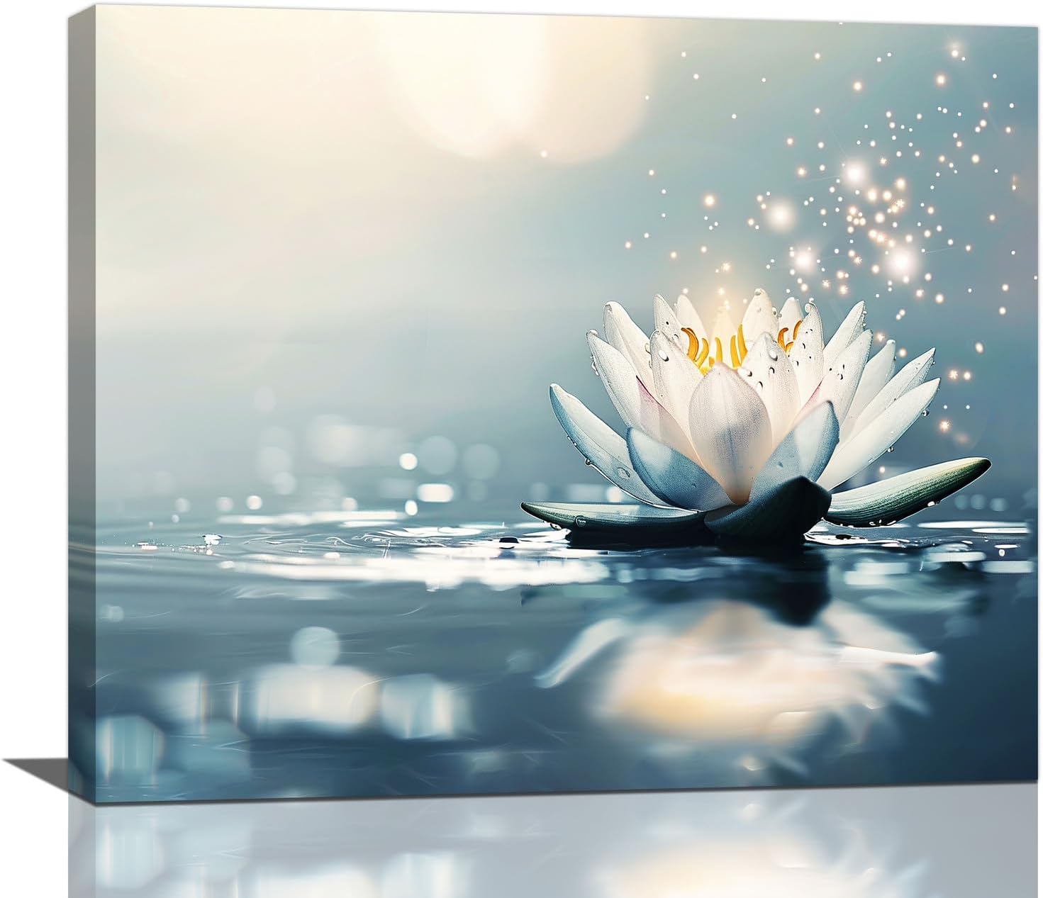 Bathroom Lotus Wall Art Floral Pictures Zen Meditation Wall Decor Yoga Spa Spiritual Canvas Print Painting Artwork for Bathroom Restroom Living Room Bedroom 20"x24"