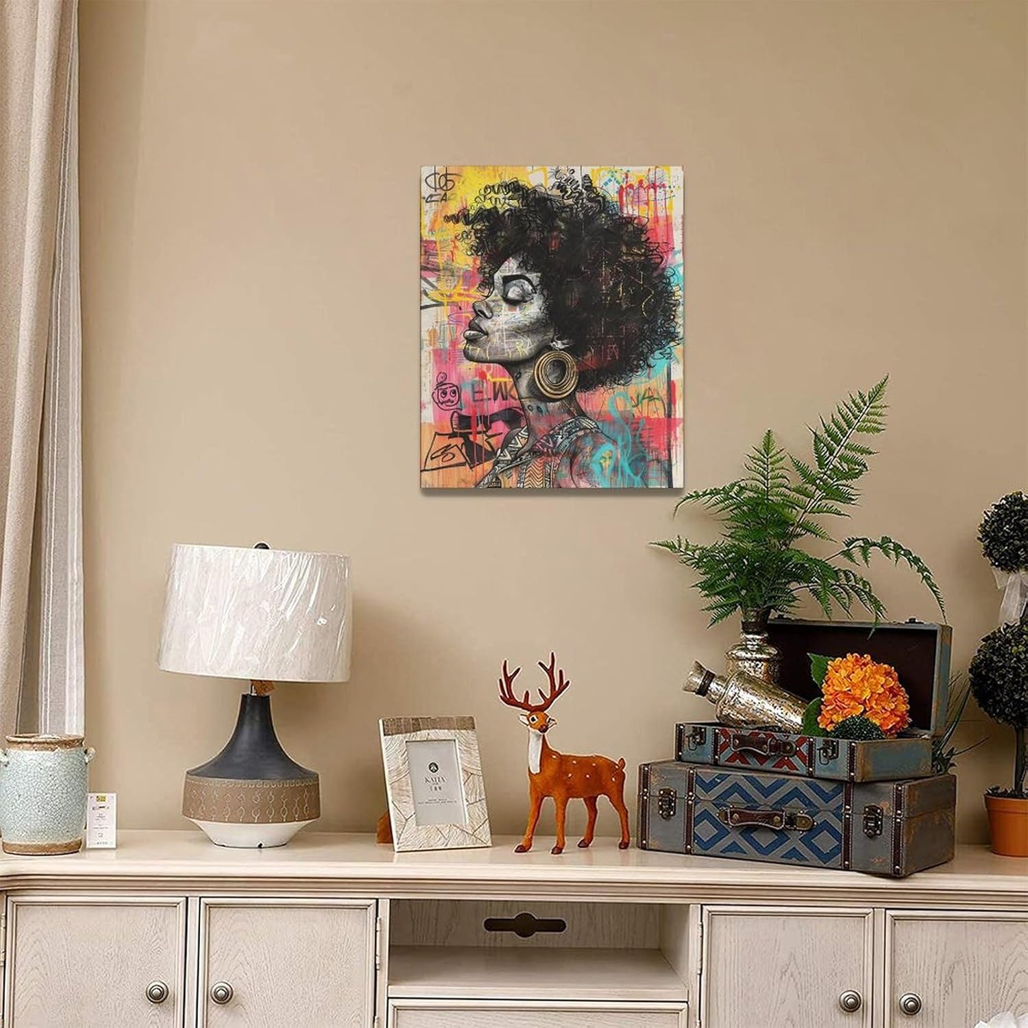 Quorin African American Wall Art Banksy Graffiti Black Woman Pictures Black Girl Wall Decor Canvas Print Painting Artwork for Bathroom Living Room Bedroom 16"x20"
