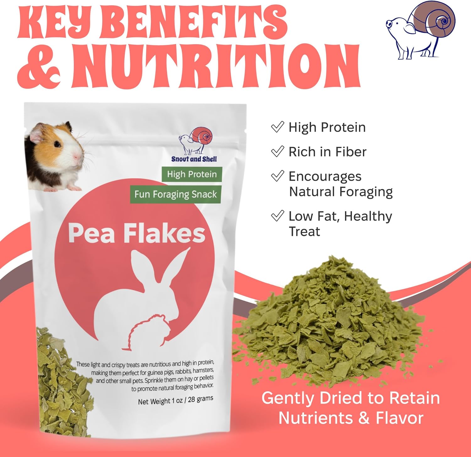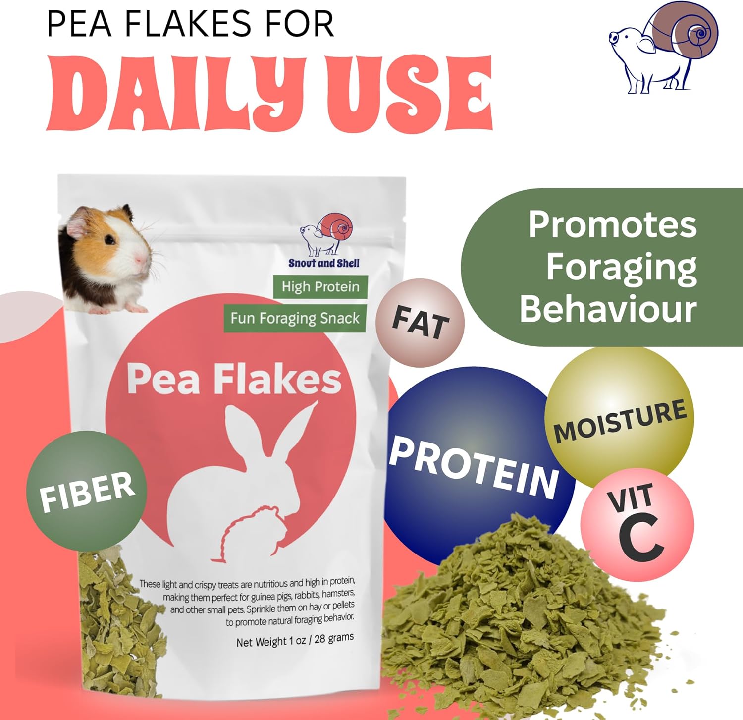 Snout and Shell Pea Flakes for Small Pets – High-Protein Treat for Guinea Pigs, Rabbits, Hamsters, Chinchillas & More – Fun Foraging Snack – 2 oz (28g)