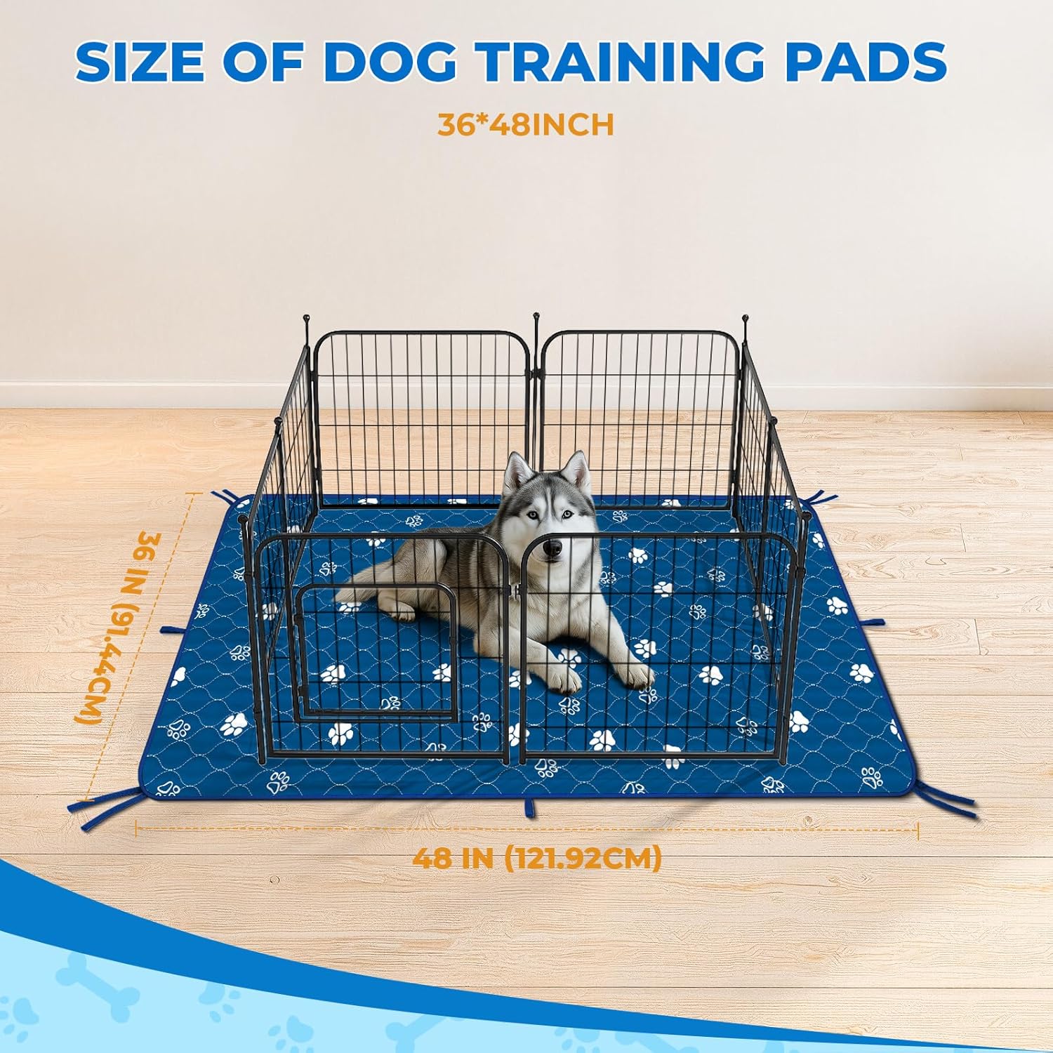 Fostanfly Washable Pee Pads for Dogs, 2 Pack Large 36"x48" Ultra-Absorbent and Leak-Proof Non-Slip Reusable Potty Training Pads for Dogs, Puppy & Cats of Add 8 Lanyards-Blue