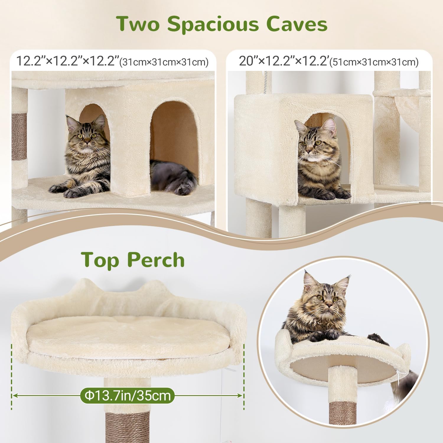 - ENHANCED STURDY STABILITY - The thickened and enlarged base board ensures enhanced sturdy. The unique design ensures the center of gravity is precisely centered, making it difficult for this tall cat tree tower to tip over even during movements by large cats
