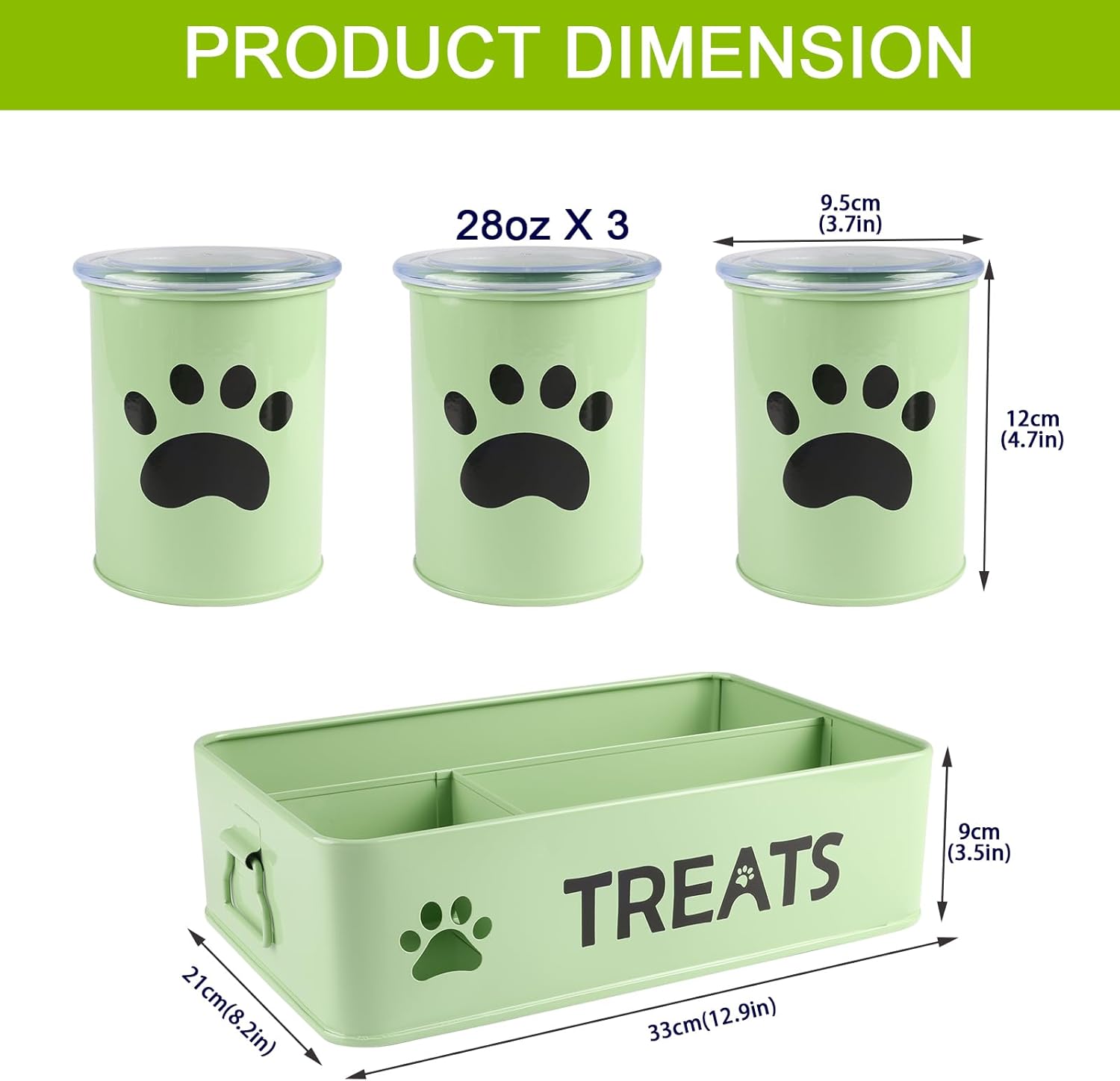- 【 Medium capacity】 -Holds 28 ounces each jar and measures 3.74" D x 4.72 H.and each container is perfect for use as a treat tin, dog cookie jar, dog bone container, pet food jar, dog biscuit container or puppy treat canister.