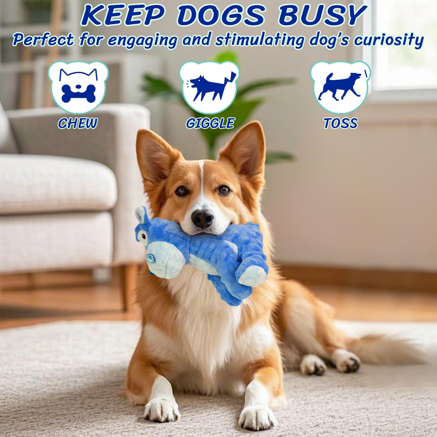 Squeaky Stuffed Dog Toys, Chew Toy for Large Medium Small Breeds, Plush Dog Toys to Keep Them Busy, Puppy Teething Dog Toy, Crinkle Dog Toy (Blue Hippo)