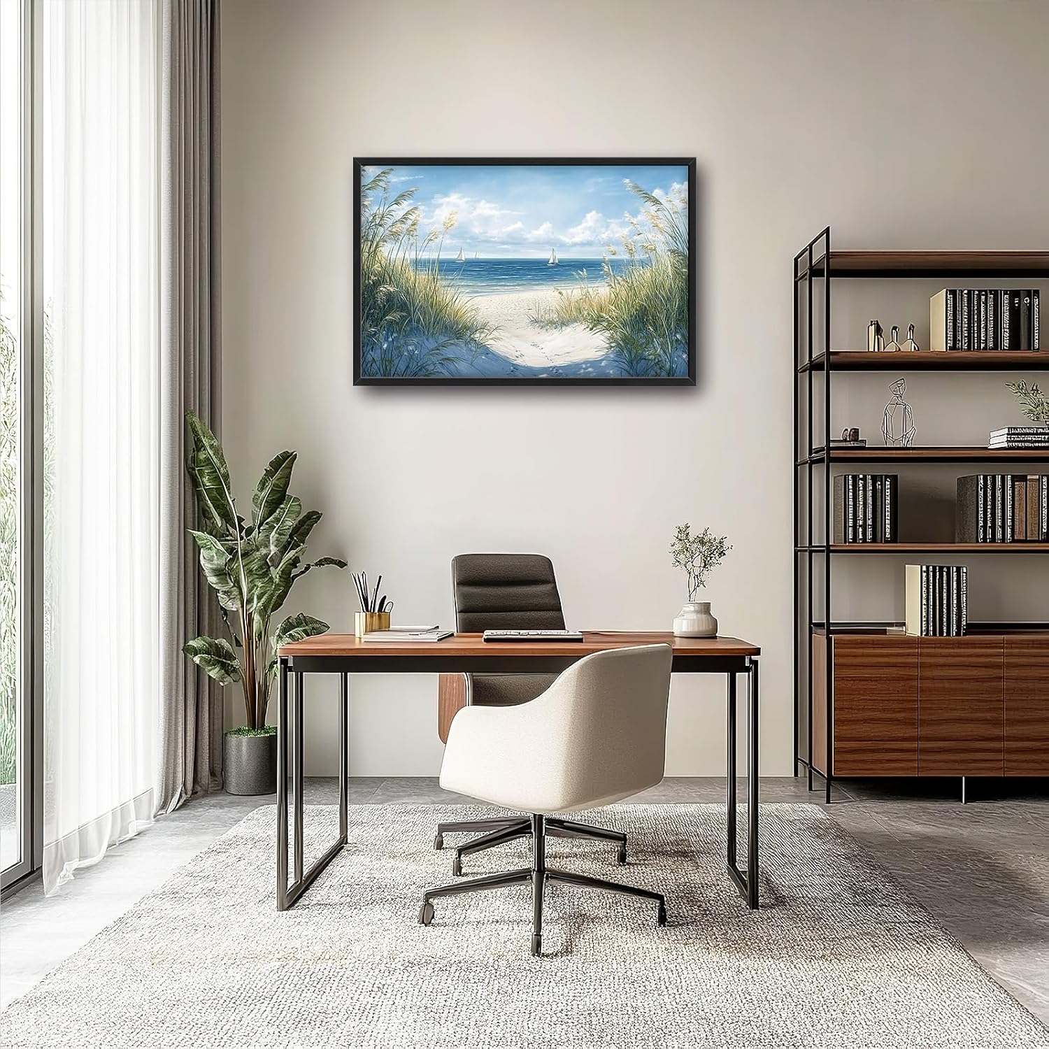 Framed Large Beach Wall Art for Living Room, Oversized Coastal Nautical Wall Decor Sailboat Canvas Seaside Pictures Modern Artwork Home Decoration for Living Room Bedroom Office 36"x24"