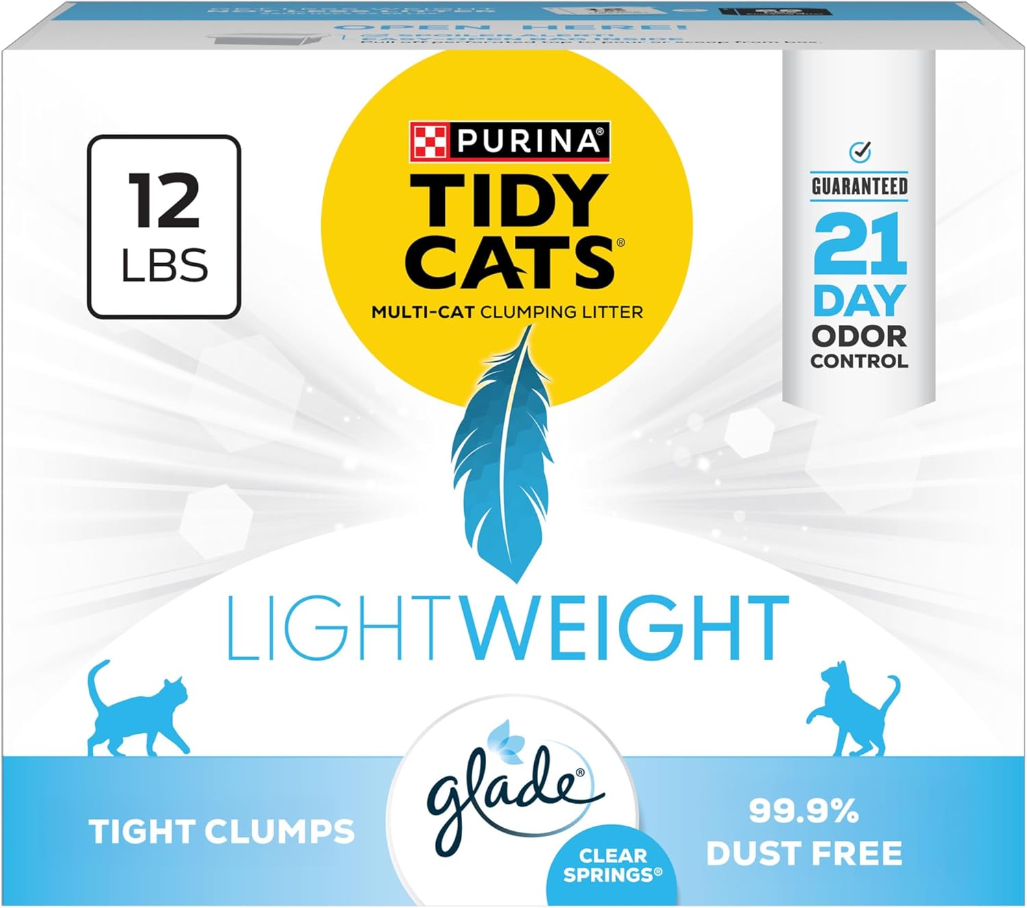 - ODOR CONTROL CAT LITTER: Purina Tidy Cats cat litter clumping with Glade Clear Springs offers 21-day odor control that prevents ammonia odor when used as directed.
