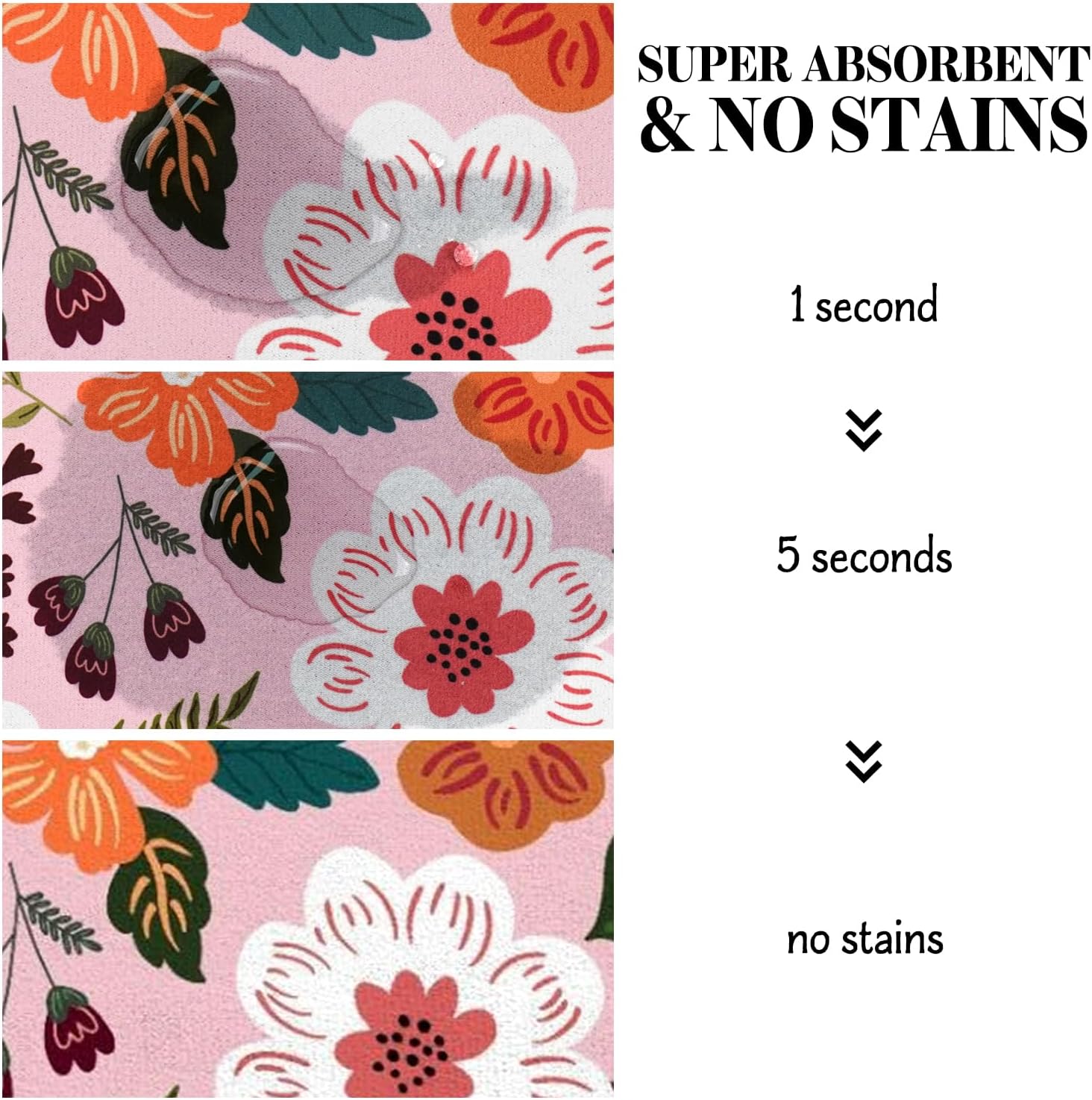 - Super Absorption: The dog mat for water bowl can absorb spilled water without leaving traces and dry quick, avoid wetting pet paws even for messy drinkers. And it does not attract pet hair like traditional silicone dog bowl mat.