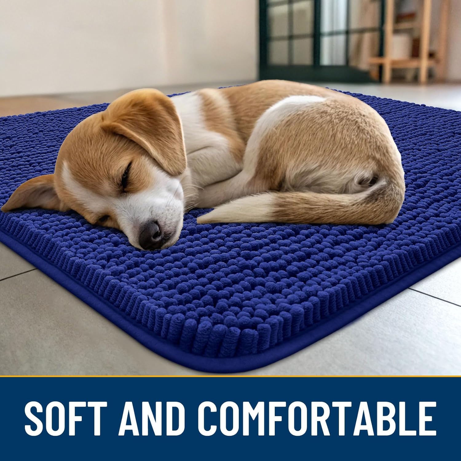 Smiry Dog Door Mat for Muddy Paws 24x16, Absorbs Moisture and Dirt Doormat, Non-Slip Washable Quick Dry Chenille Front Door Mat Indoor Entrance, Entryway Carpet for Inside Floor, Navy Blue