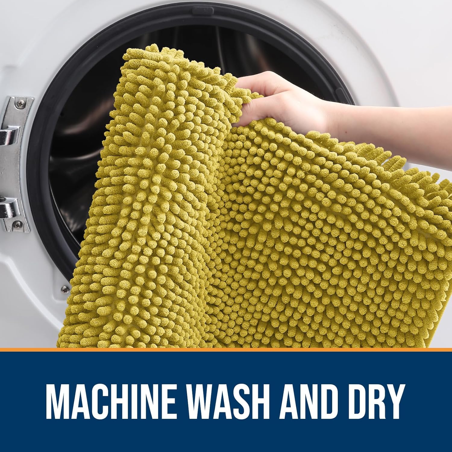 OLANLY Dog Door Mat for Muddy Paws 36x24, Absorbs Moisture and Dirt, Absorbent Non-Slip Washable Doormat, Quick Dry Chenille Mud Mat, Entry Indoor Entryway Carpet for Inside Floor, Mustard Yellow