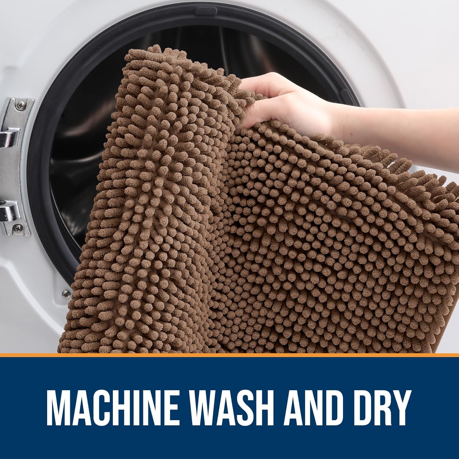 OLANLY Dog Door Mat for Muddy Paws 24x16, Absorbs Moisture and Dirt, Absorbent Non-Slip Washable Doormat, Quick Dry Chenille Mud Mat for Dogs, Entry Indoor Entryway Carpet for Inside Floor, Mocha