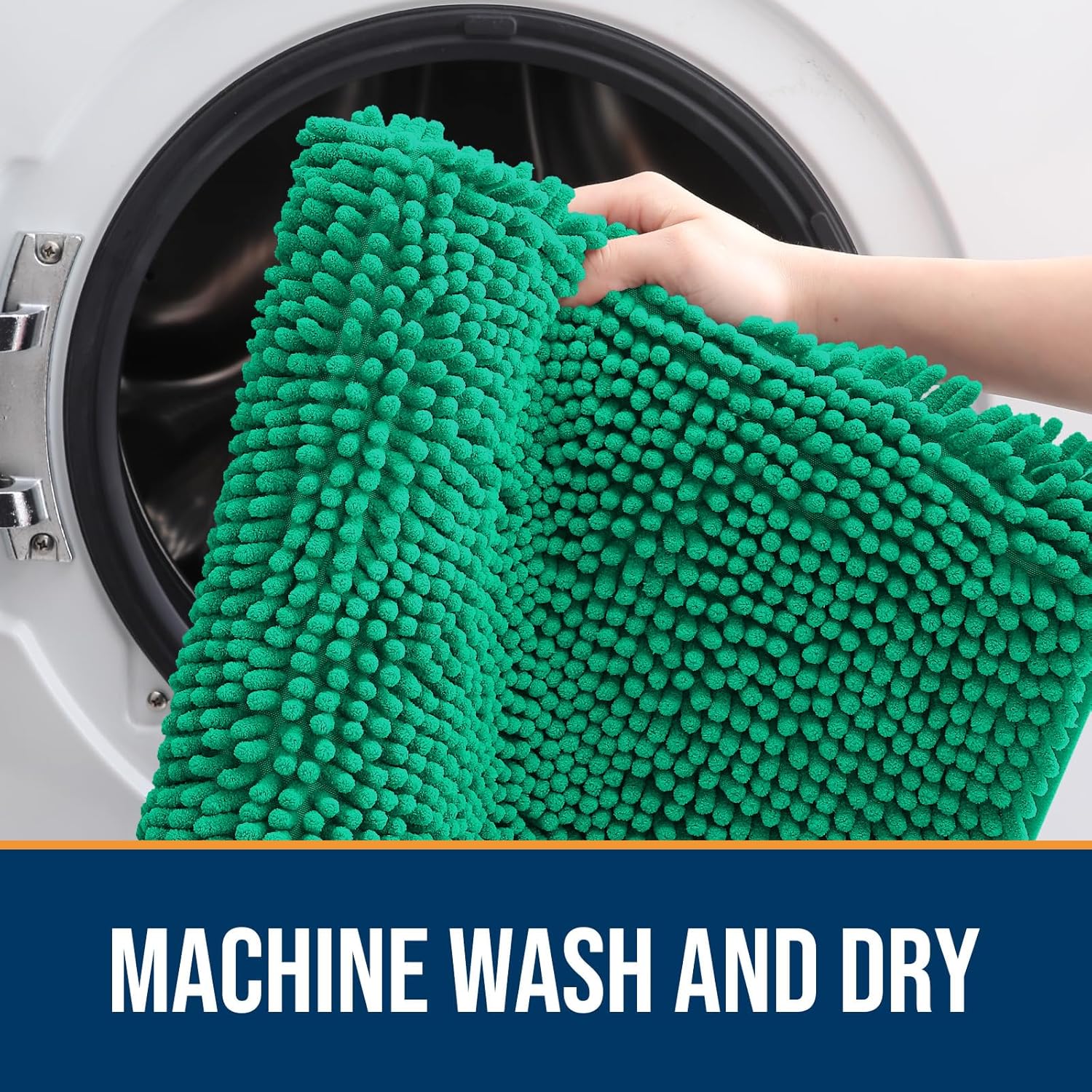 OLANLY Dog Door Mat for Muddy Paws 36x24, Absorbs Moisture and Dirt, Absorbent Non-Slip Washable Doormat, Quick Dry Chenille Mud Mat, Entry Indoor Entryway Carpet for Inside Floor, Emerald Green