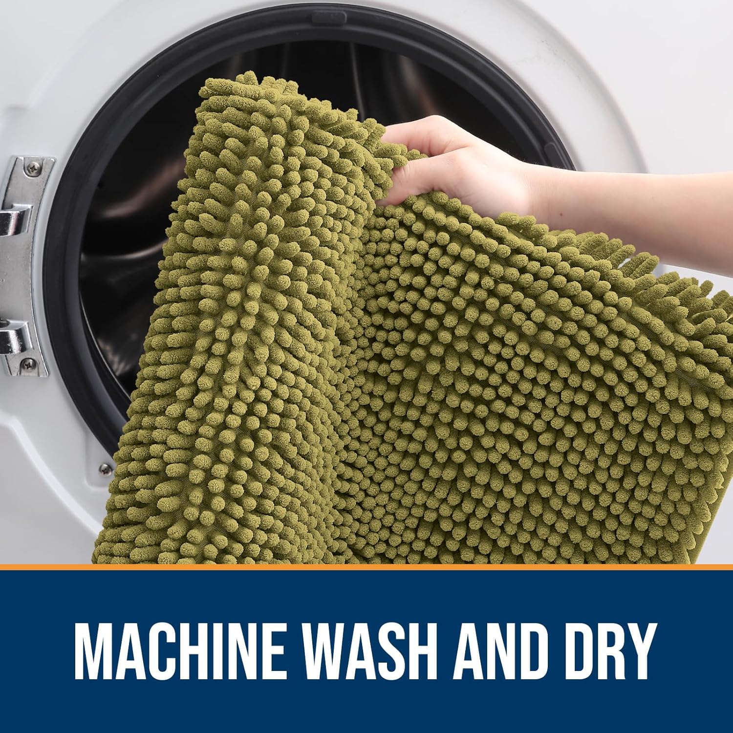 OLANLY Dog Door Mat for Muddy Paws 24x16, Absorbs Moisture and Dirt, Absorbent Non-Slip Washable Doormat, Quick Dry Chenille Mud Mat, Entry Indoor Entryway Carpet for Inside Floor, Willow Green