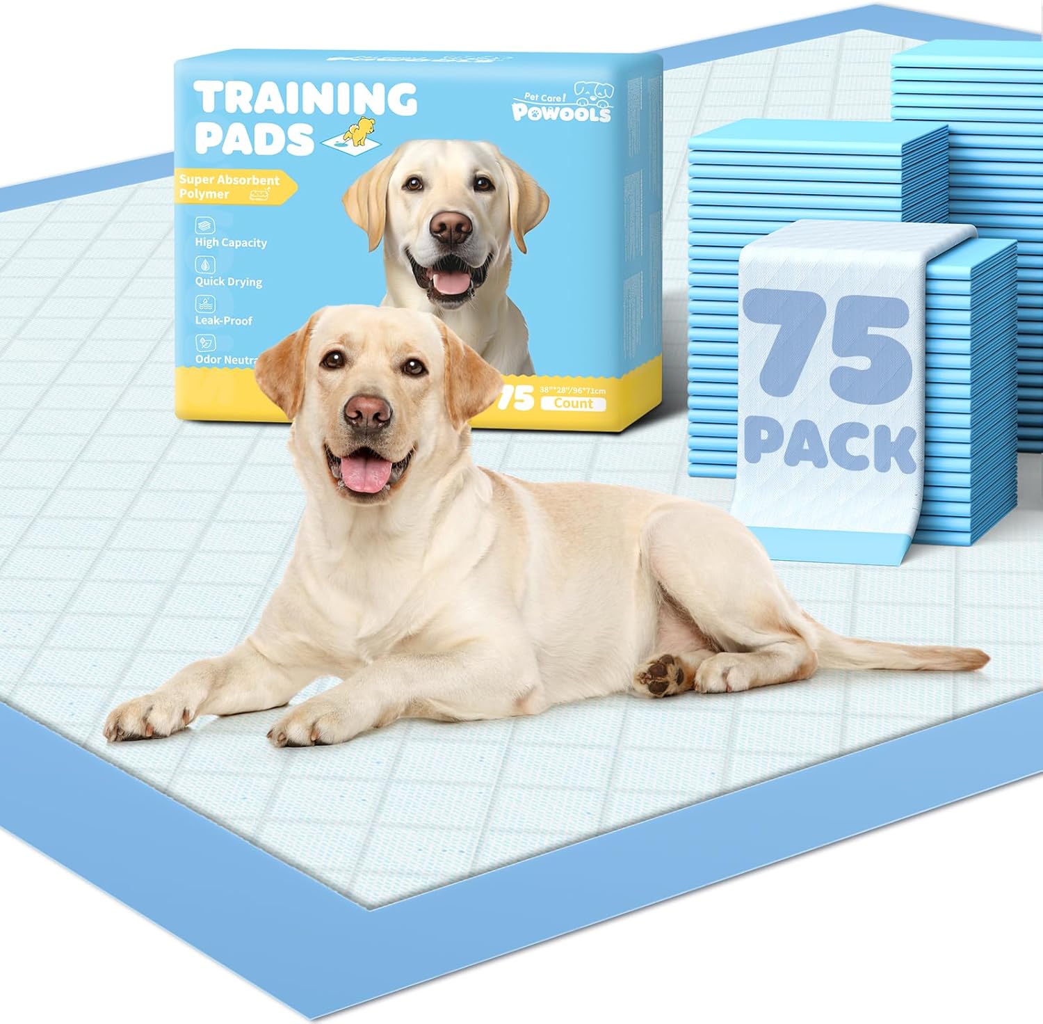 - COST-EFFECTIVE BULK PACK: With a spacious 38"x 28" size and 75-packs bulk set, Powools pee pads for dogs large require fewer changeouts than standard pads. The large size and bulk supply provide extended use between refills, saving you time and hassle.