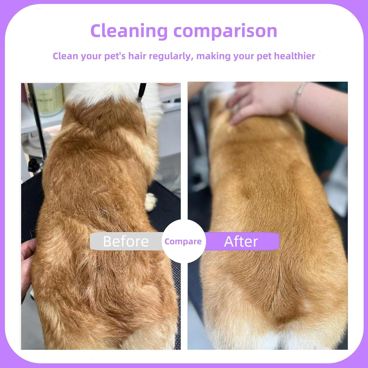 - [ Ideal Cleaning Effect ] Regular use of this pet comb for cats & dogs can effectively remove loose hair, knots, tangles, dander and residual dirt. Suitable for short, medium, fine or curly dogs/cats/rabbits to to make your pet fall in love with combing and keep your home clean and hygienic.