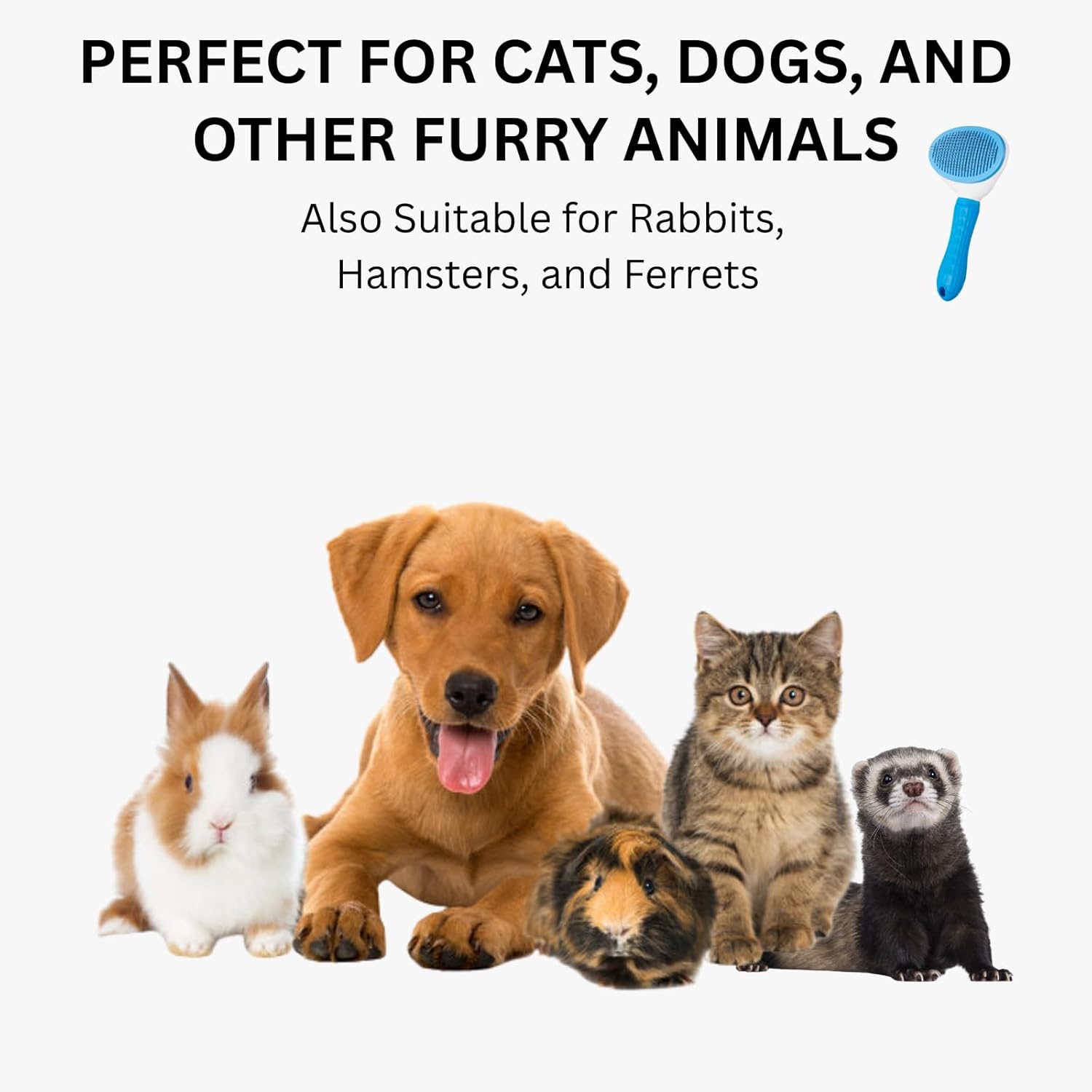 - [Gentle & Safe for All Fur Types] - The rounded-tip stainless steel bristles are gentle on the skin, preventing scratches while effectively removing loose fur. Safe for cats, dogs and other furry pets like rabbits and ferrets. You can even use it on your kittens and puppies, it's that safe!