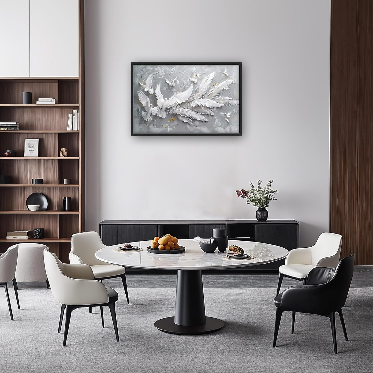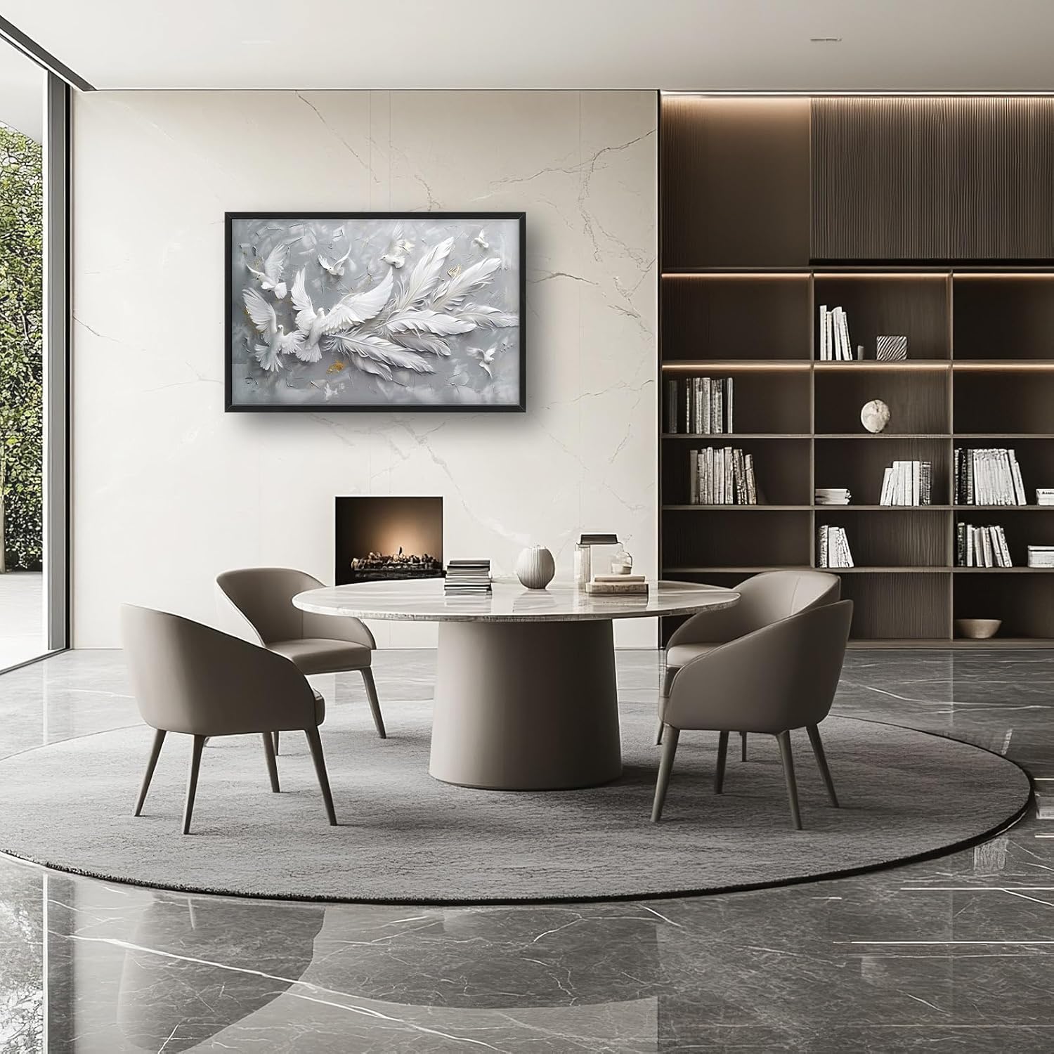 Quorin Feather Dove Bird Large Wall Art White Gray Holy Wings Pictures Peaceful Birds Flying Wall Decor Canvas Print Painting Artwork for Bathroom Living Room Bedroom 36L x 24W