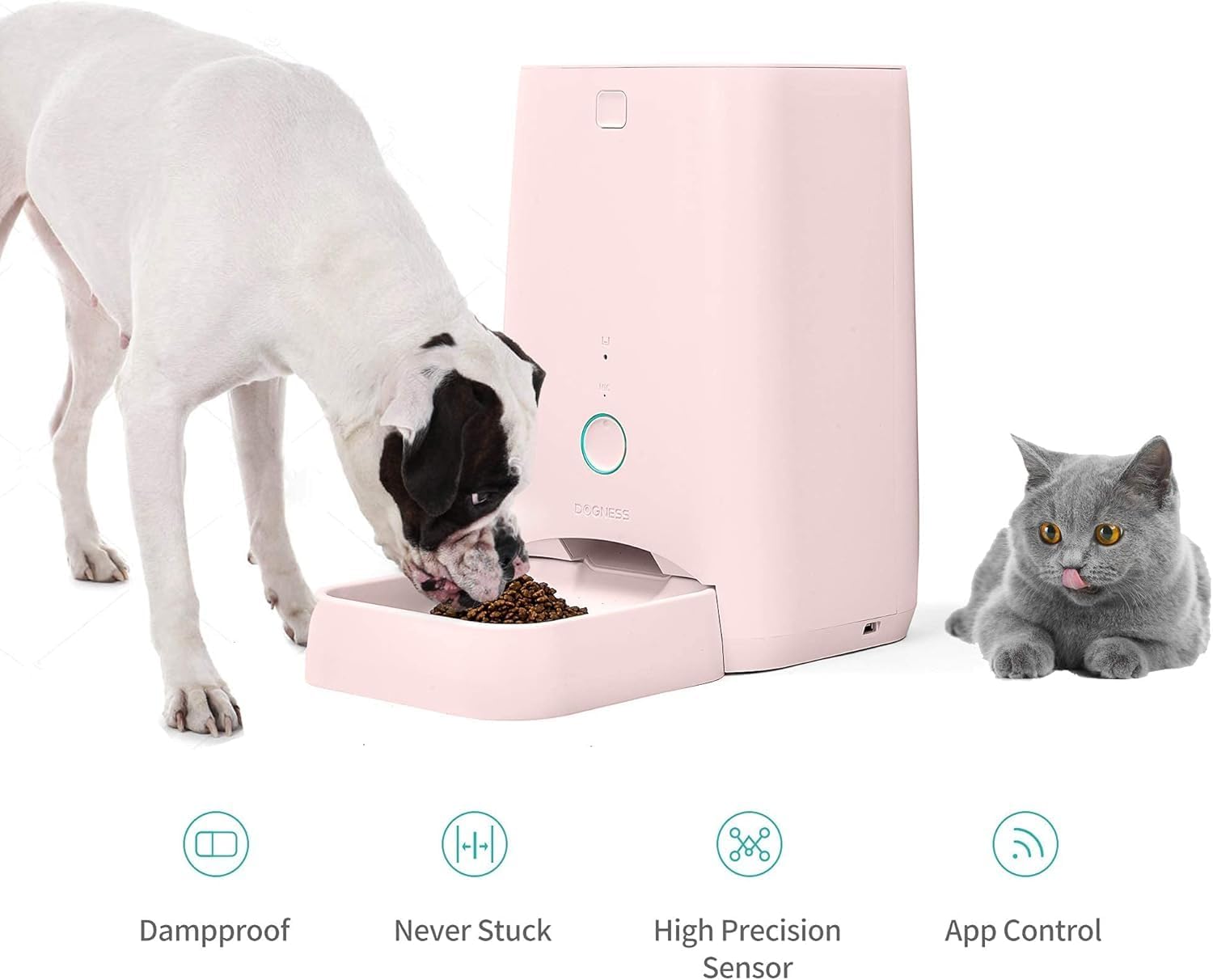 DOGNESS 6L Smart Feeder, Wi-Fi Enabled Pet Feeder for Cat and Dog, Smartphone App for iOS and Android, Portion Control, Fresh Lock System Auto Food Dispenser Pink