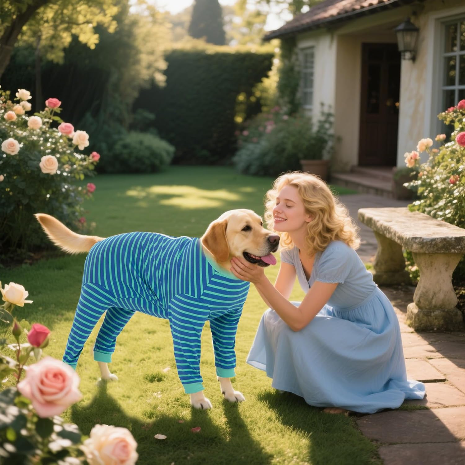 Yeapeeto Dog Onesie Surgery Recovery Suit for Large Medium Bodysuit Dogs Pajamas PJS Full Body for Shedding, Prevent Licking, Wound Protection, Cone Alternative… (Blue Green, 3XL)