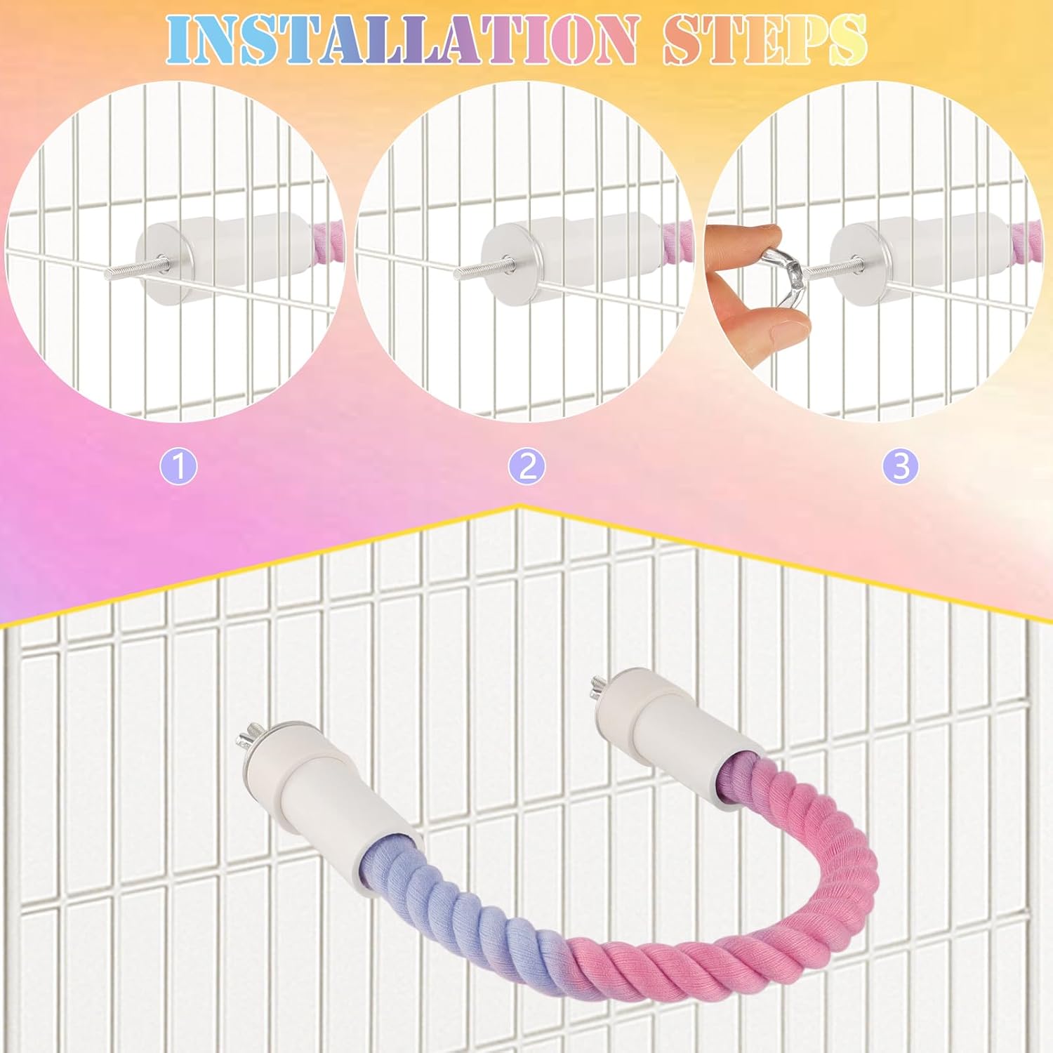- Multi Size Matching: We have prepared three sizes of ropes for you, namely 2 * 13.8in, 1 * 23.6in, and 1 * 31.5in. You can create a suitable parrot amusement park according to the scene.
