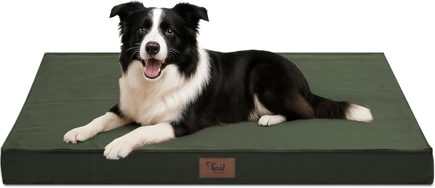 Outdoor Dog Bed for Medium Dogs, Waterproof Dog Crate Bed for Puppy Beds, Orthopedic Egg Crate Foam Pet Bed with Washable and Removable Oxford Cover, Dark Green