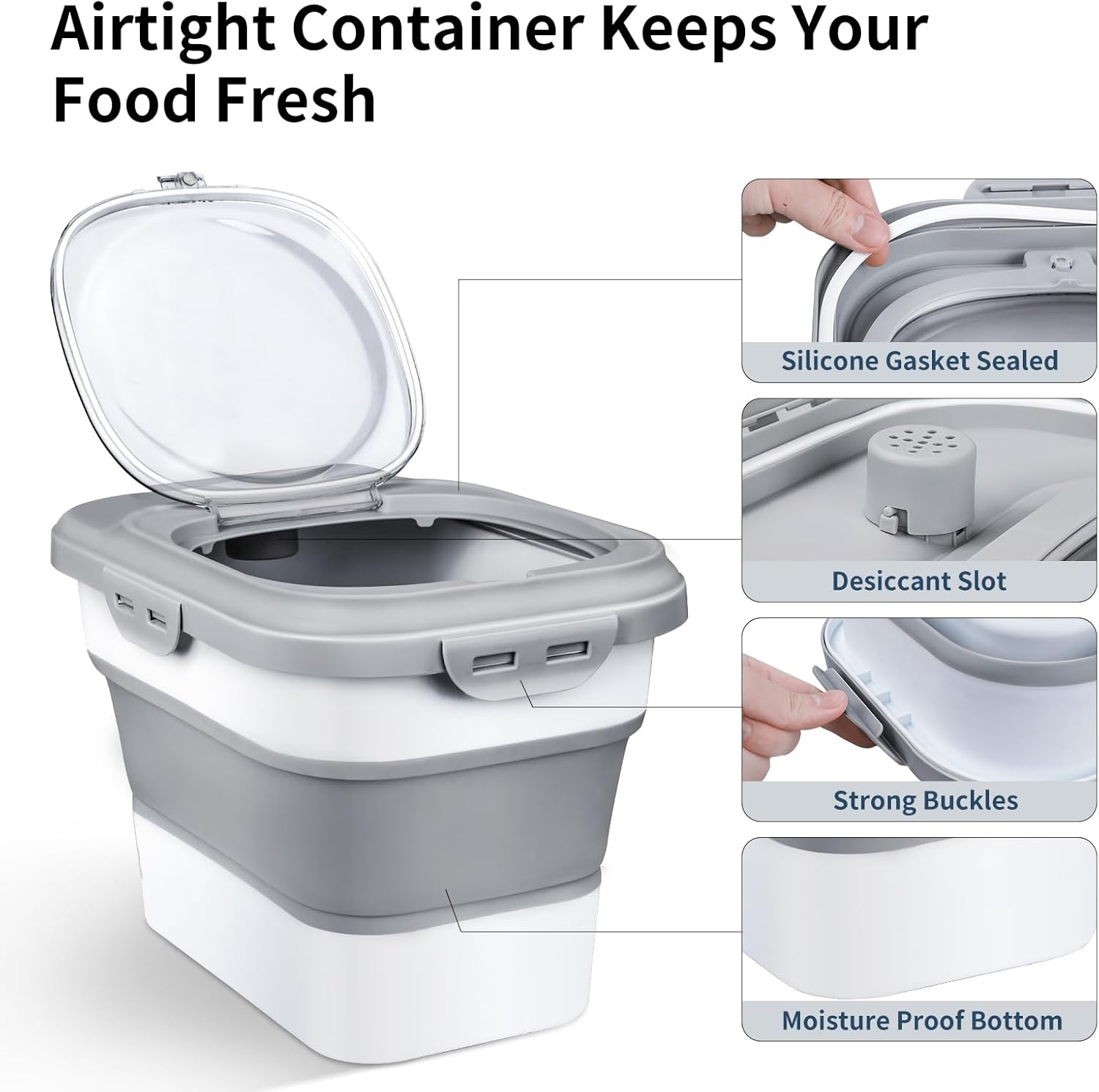 Rice Storage Container, Collapsible Airtight Food Storage Containers 6-20 Lbs, Rice Dispenser with Measuring Cup and Small Bin for Flour Cereal Pasta Grain, Cat Pet Dog Bird Food Container