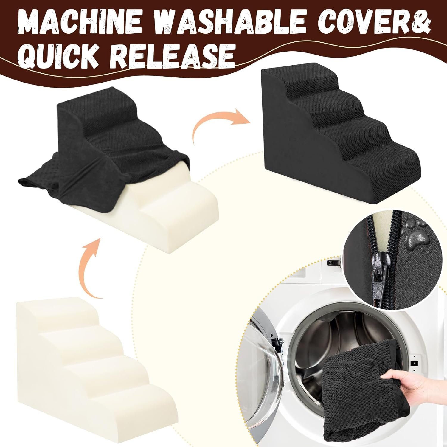 - Easy to Install and Clean: This pet step can be assembled and disassembled through simple steps. It is easy to clean. You can wash the removed cover by machine to keep the pet step clean and tidy
