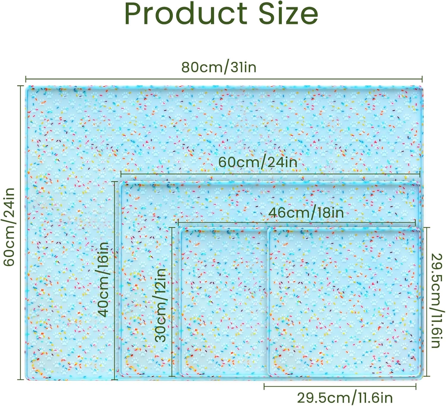 - Versatile Usage: This extra-large dog feeder mat accommodates various types of bowls and pet supplies - mats under dog food and water bowls, cat fountain, feeder stations and litter boxes for messy proof. Pet placemats are suitable for all breeds of cats, dogs, puppies and other animals.